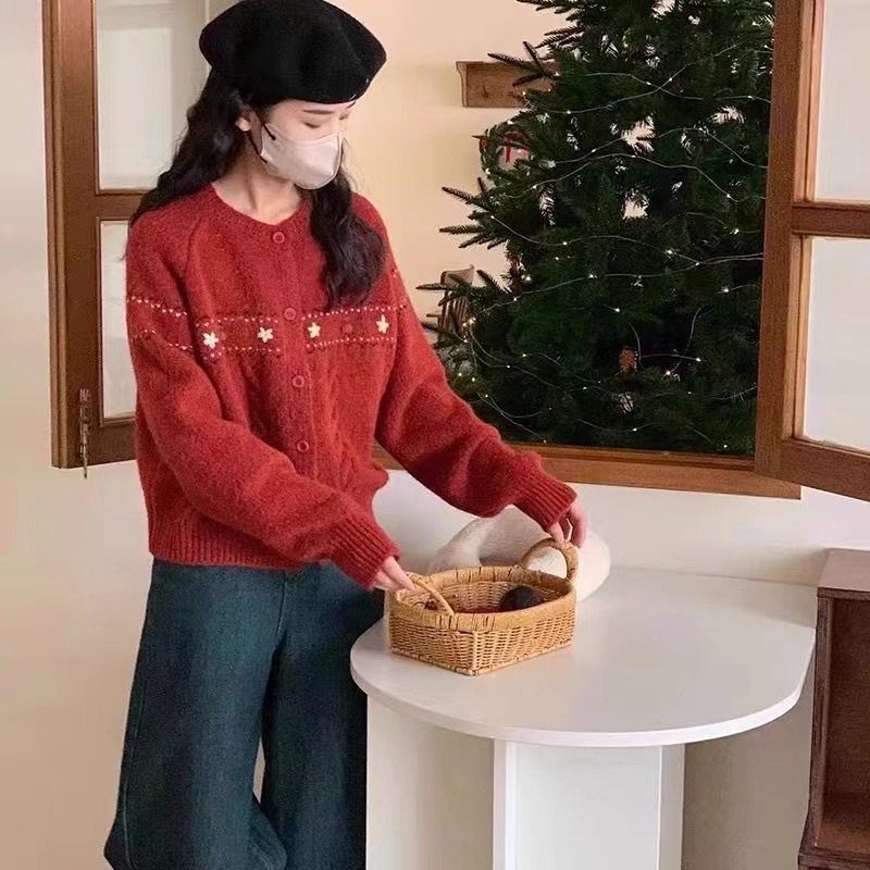 | nameOriginal | Autumn and Winter new retro design French style small new year knitted cardigan top jacquard coat sweater for women |