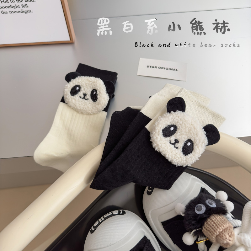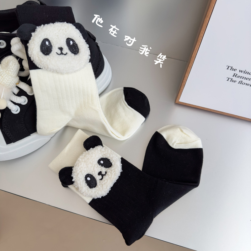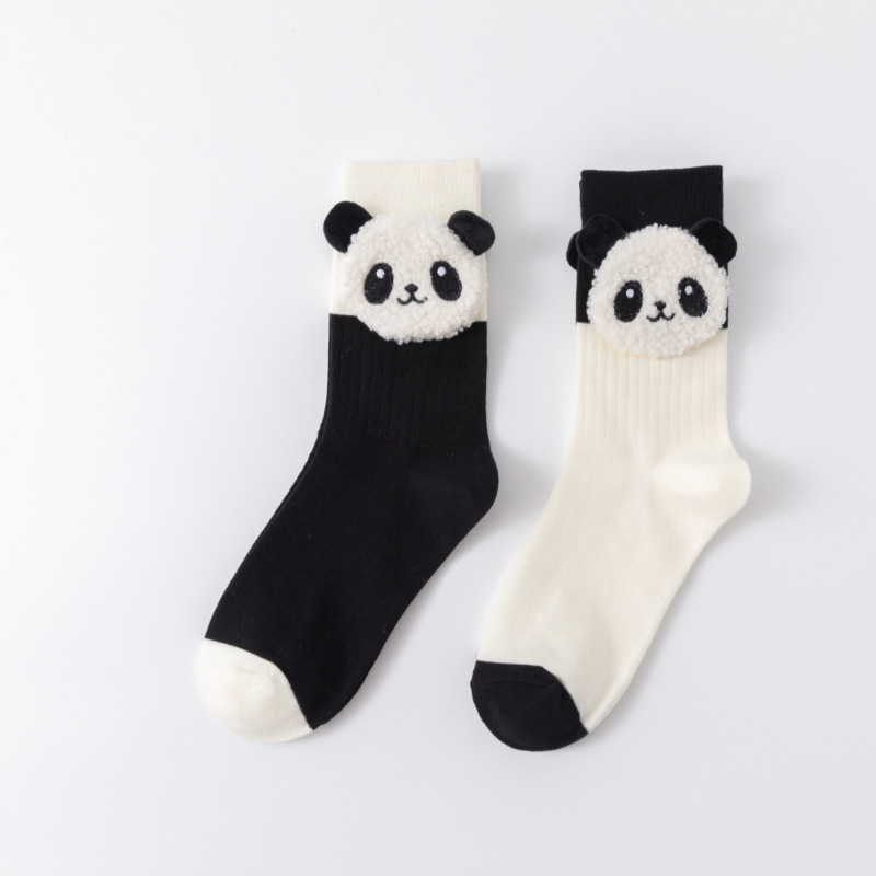 Autumn and Winter new socks women's mid-calf socks cute lamb wool three-dimensional black and white contrast color soft Panda women's socks jewelry socks