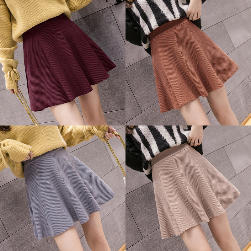 | nameOriginal | Autumn and Winter New Solid Color Knitted Skirt Women's Short Skirt High Waist A- Line Skirt Umbrella Skirt College Style Caramel Color Base Skirt |