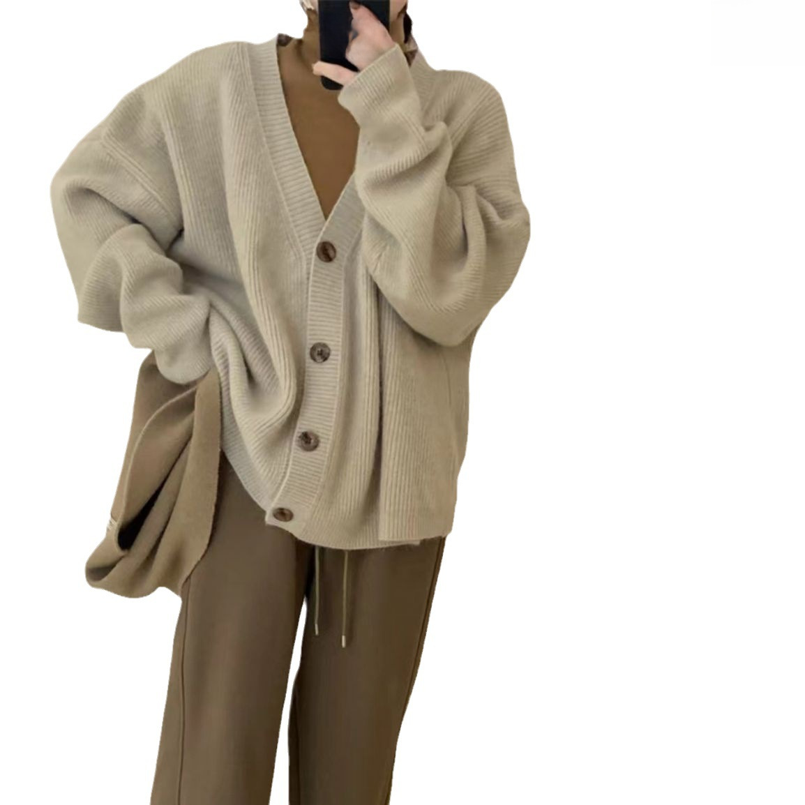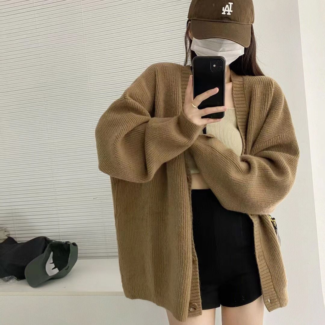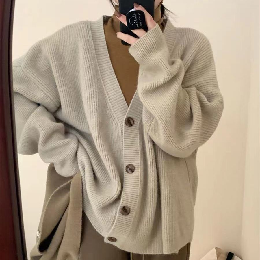 | nameOriginal | Autumn and Winter New Solid Color Soft Waxy Knitted Cardigan Women's Korean-style Pit Striped Loose Lazy Style V-neck Sweater Coat |