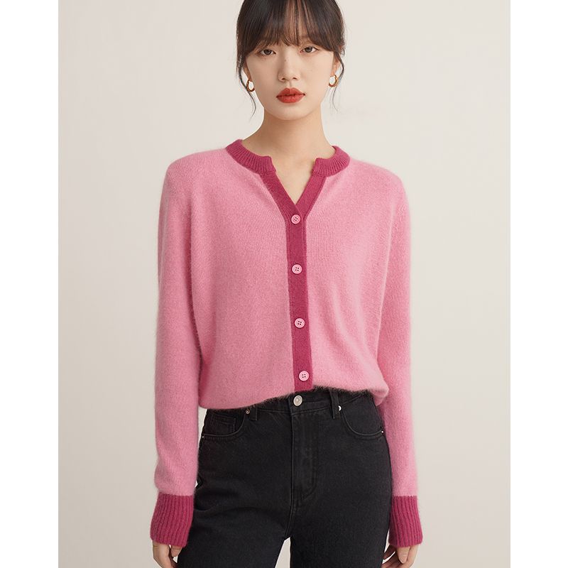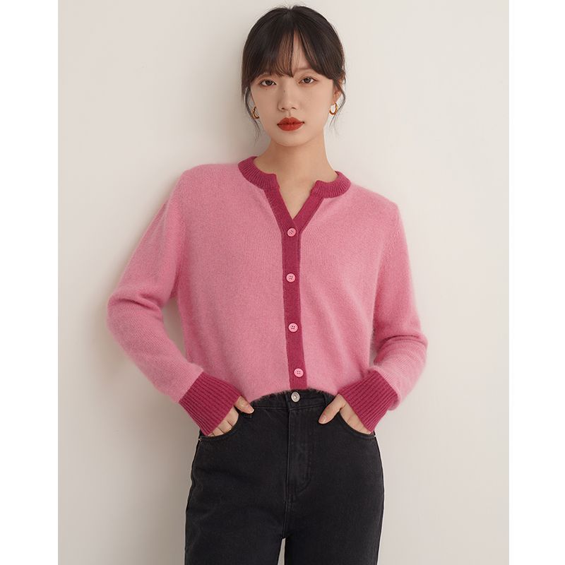Autumn and Winter new sweater cardigan women’s design sense niche V-neck top pink soft glutinous sweater plus size coat