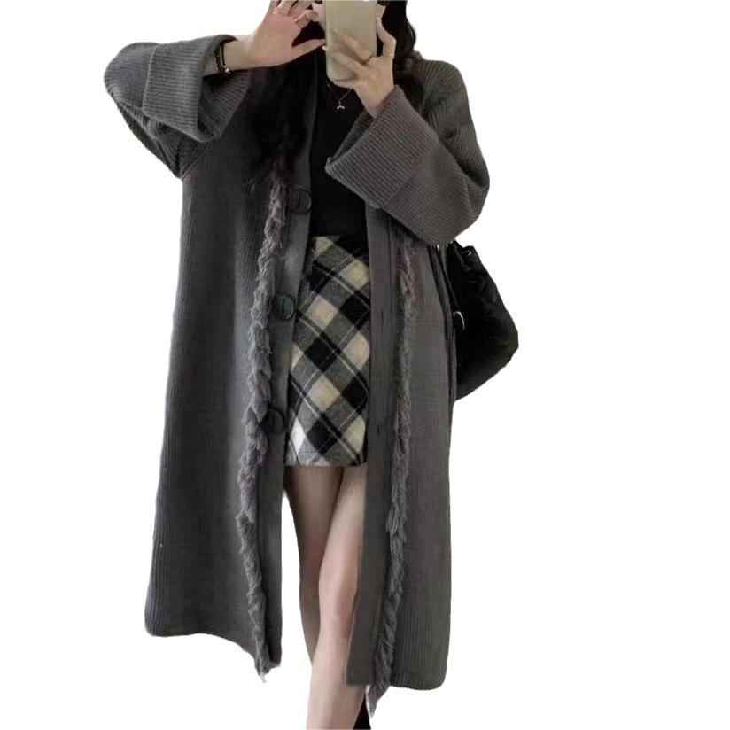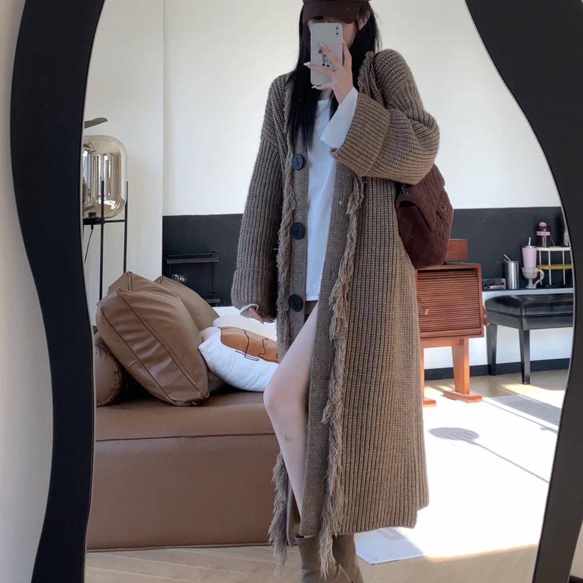 | nameOriginal | Autumn and winter New thickened loose high-grade lazy over-the-knee tassel sweater mid-length sweater cardigan coat for women |