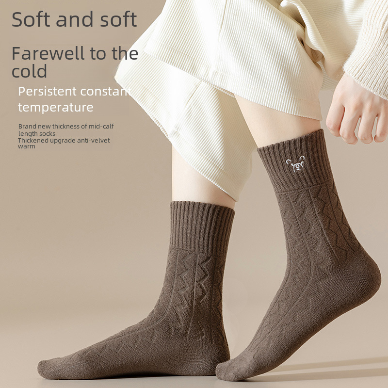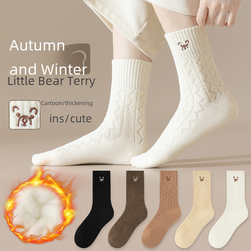| nameOriginal | Autumn and winter New thickened Terry socks women's Japanese cartoon bear white mid-calf socks floor socks warm snow socks |