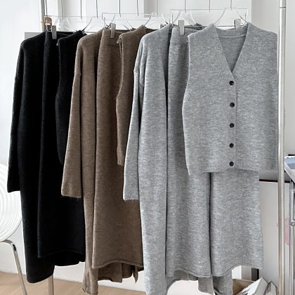 | nameOriginal | Autumn and winter new this year's popular women's casual long sleeve knitted cardigan vest high waist pants three-piece suit coat |