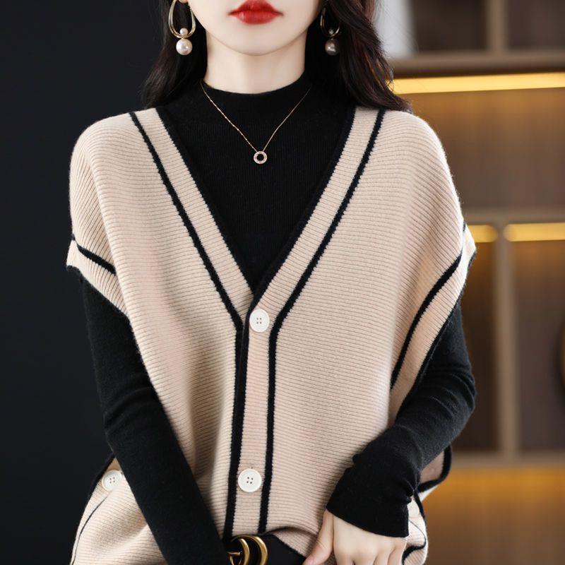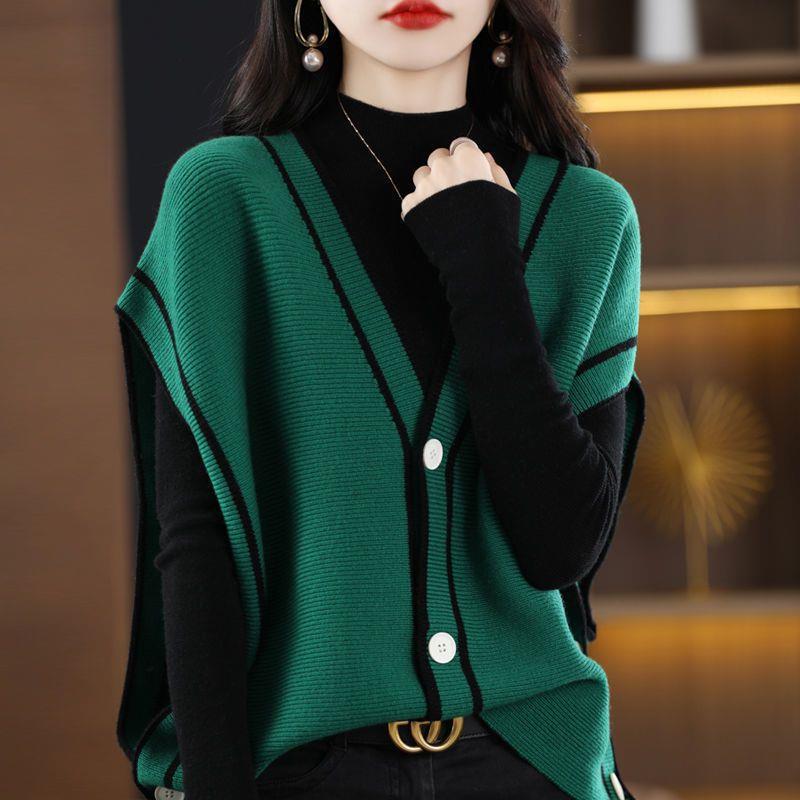 | nameOriginal | Autumn and Winter New V-neck Color Matching Knitted Cardigan Vest Women's Loose All-match Sleeveless Sweater Vest Shoulder Bat Top |