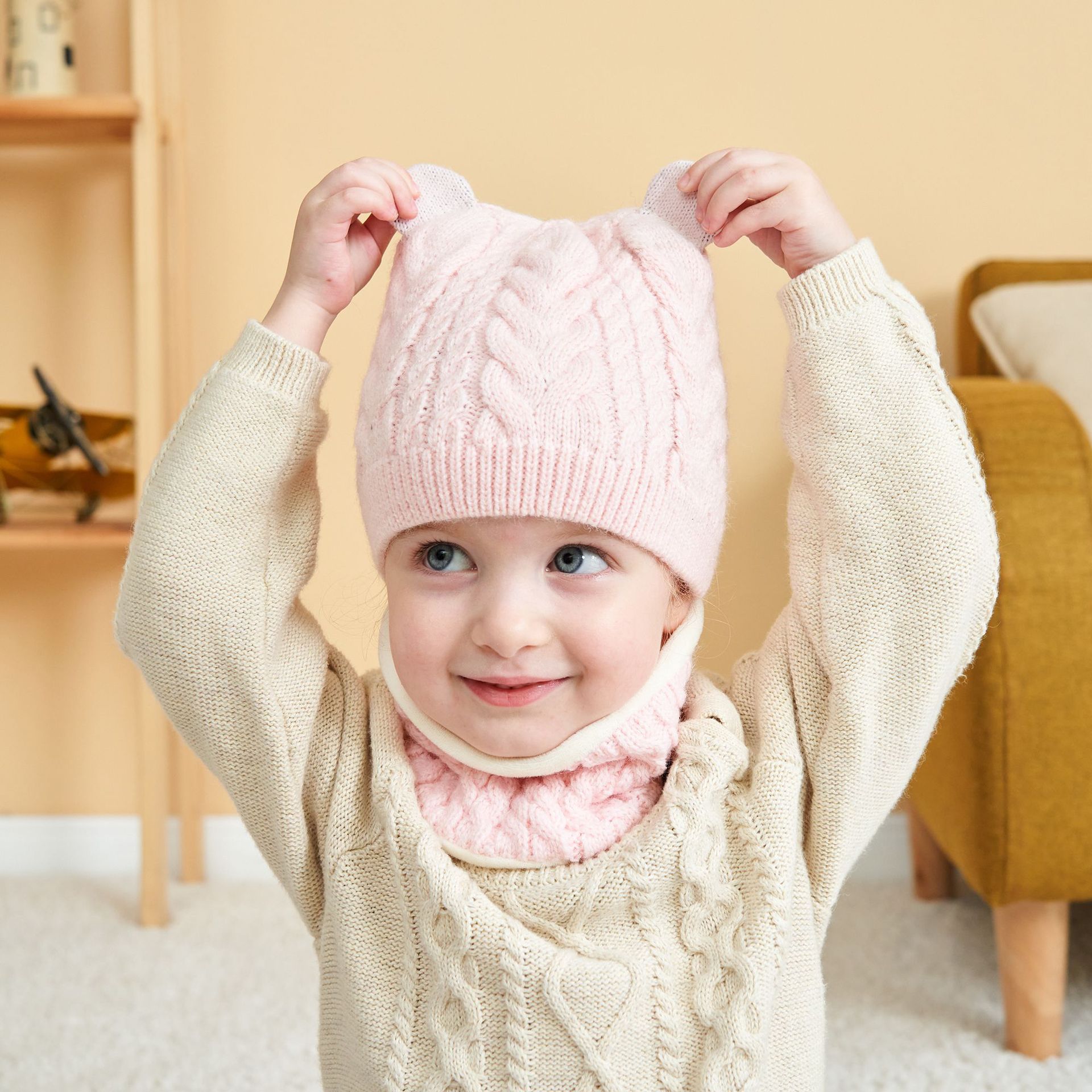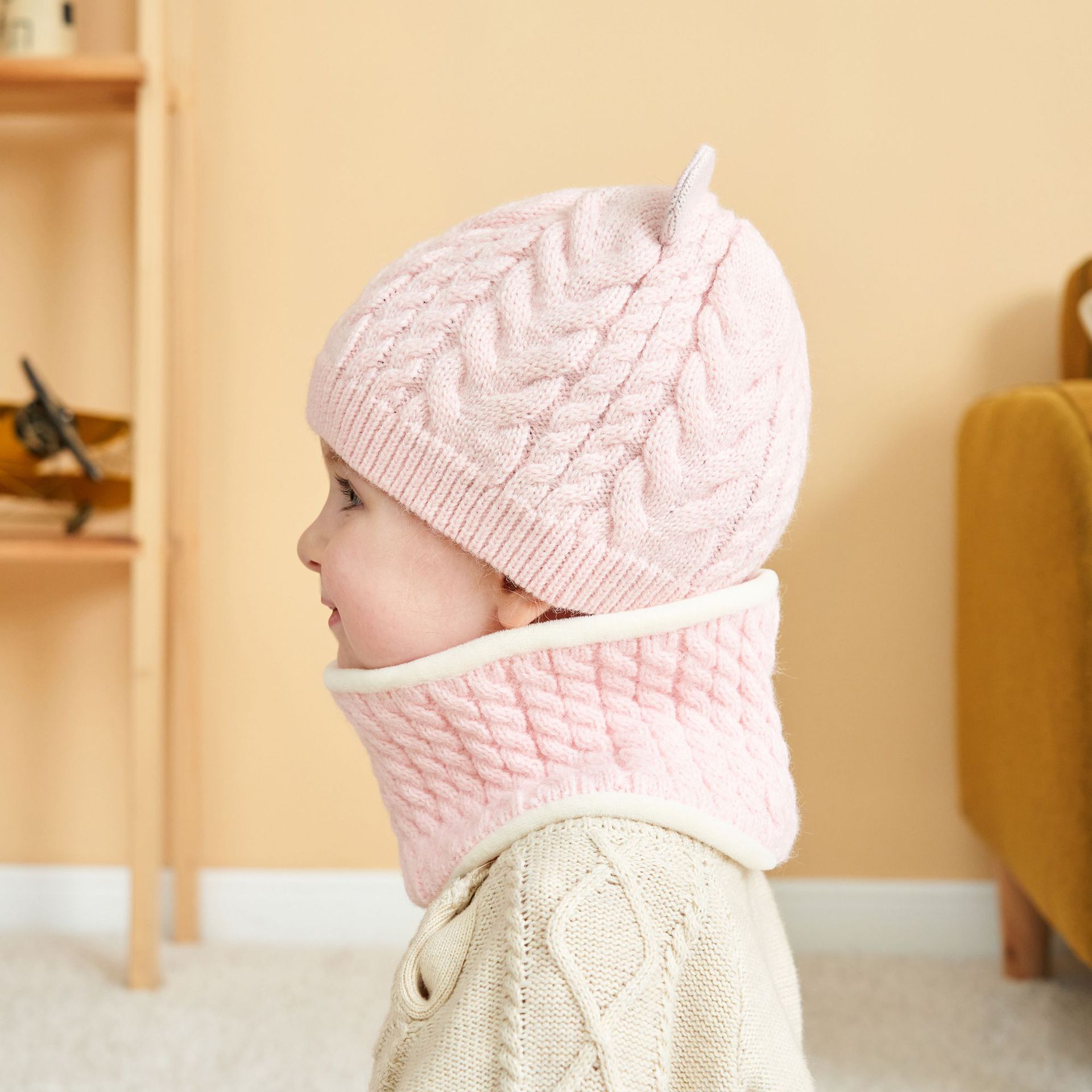 | nameOriginal | Autumn and winter New velvet children's pullover hat scarf two-piece spot baby wool single ball hat scarf |