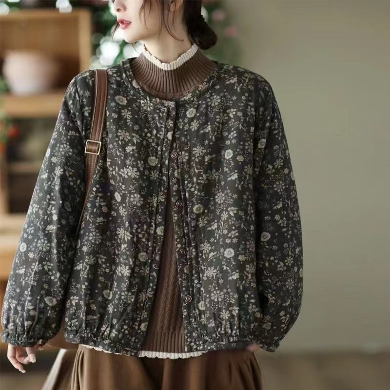 | nameOriginal | Autumn and Winter New Vintage Floral Cotton Jacket Top Loose Thickened Women's Thin Cotton-padded Jacket Casual Art |