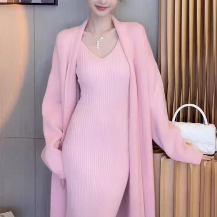 | nameOriginal | Autumn and Winter new women's clothing suit temperament small sweater knitted cardigan coat sling dress two-piece suit fashion |