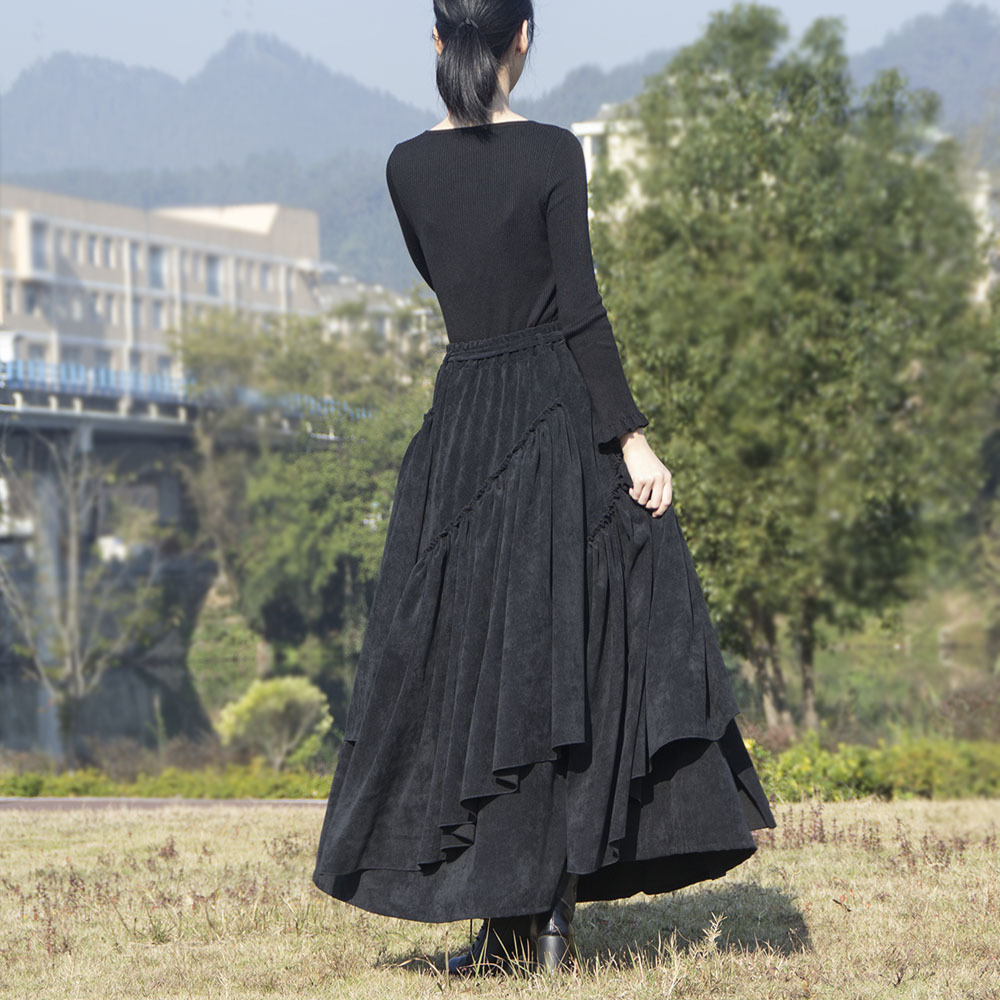 | nameOriginal | Autumn and Winter New Women's Thickened Corduroy Skirt Retro Ethnic Style High Waist Lace-up Long Skirt Thickened Black |
