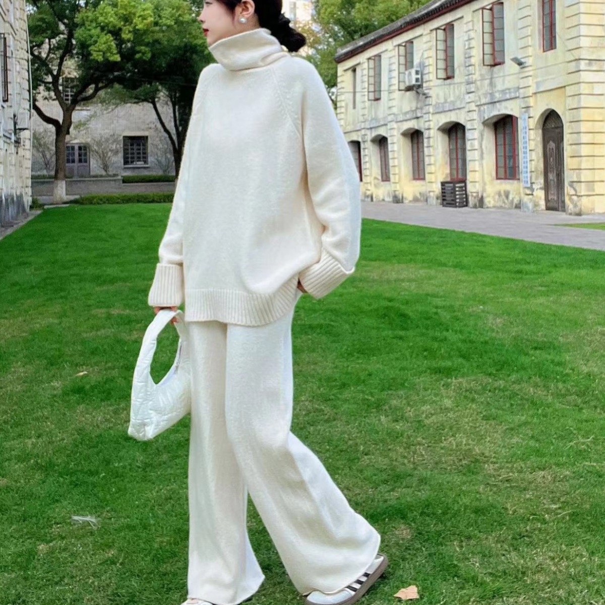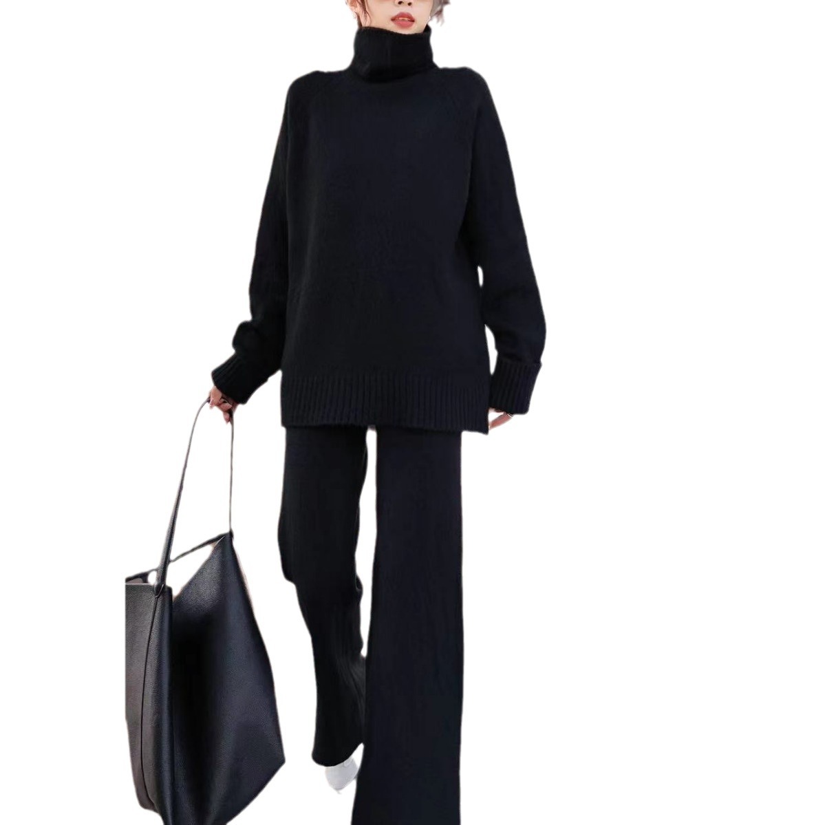 | nameOriginal | Autumn and Winter new women's turtleneck sweater coat loose lazy style thick casual trousers knitted top two-piece set |