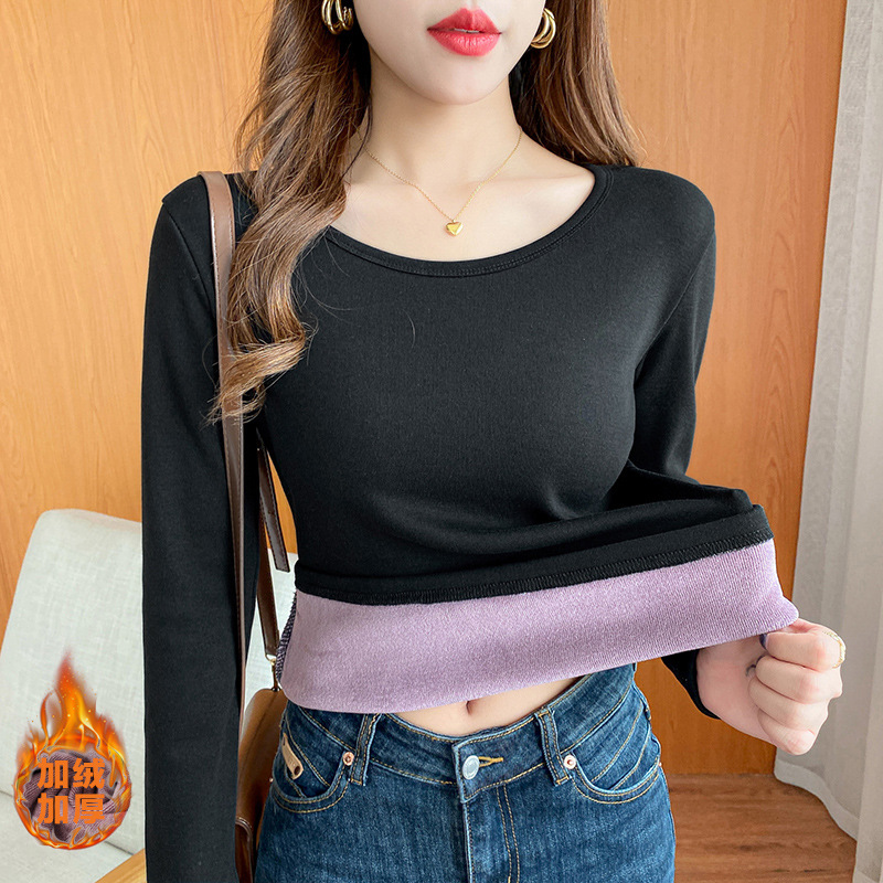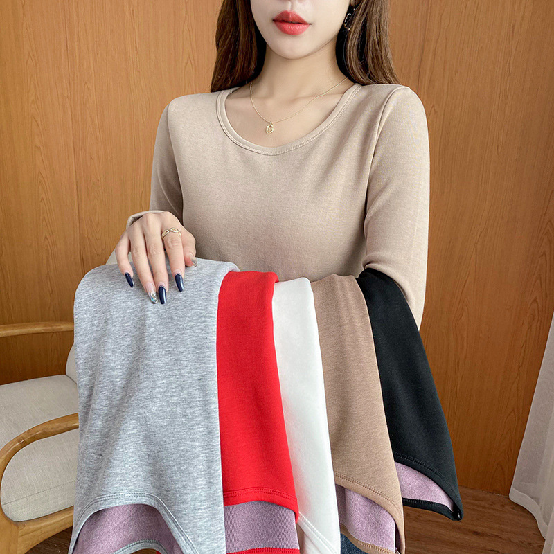 | nameOriginal | Autumn and Winter New Women's Warm Long-sleeved Women's Fleece-lined Thickened One-piece Fleece Crewneck Warm Top Women's Inner Base Shirt |
