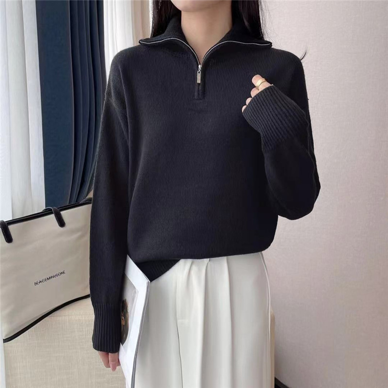 | nameOriginal | Autumn and winter New woolen sweater half-open collar zipper sweater women's sweater Korean style loose version in stock Black |