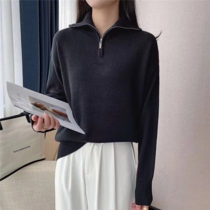 | nameOriginal | Autumn and winter New woolen sweater half-open collar zipper sweater women's sweater Korean style loose version in stock Black |