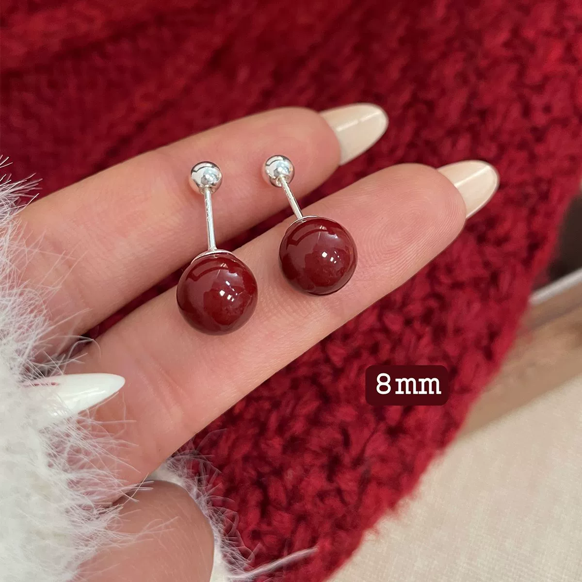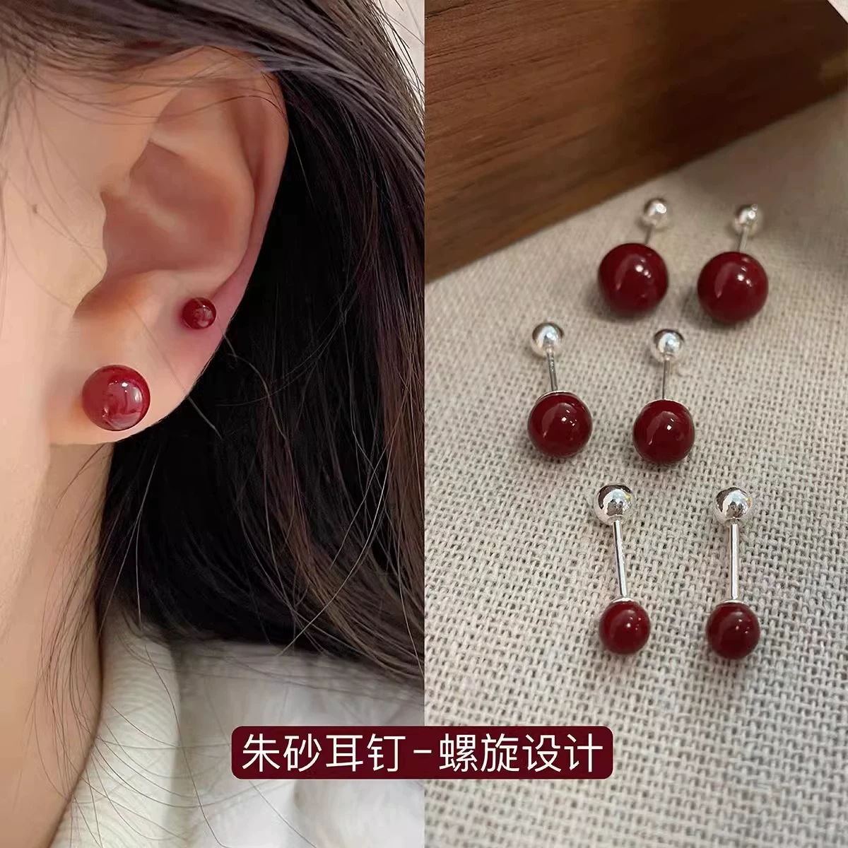 | nameOriginal | Autumn and winter new year dark red cinnabar earrings women's high-end light luxury temperament earrings 2024 new hot style earrings |