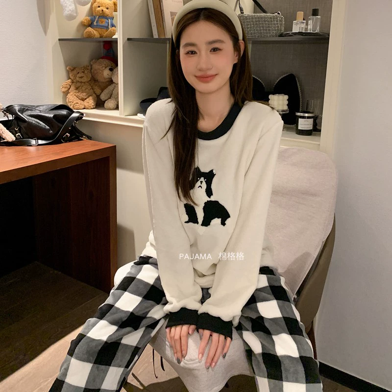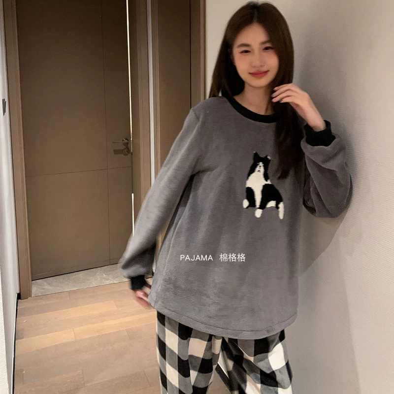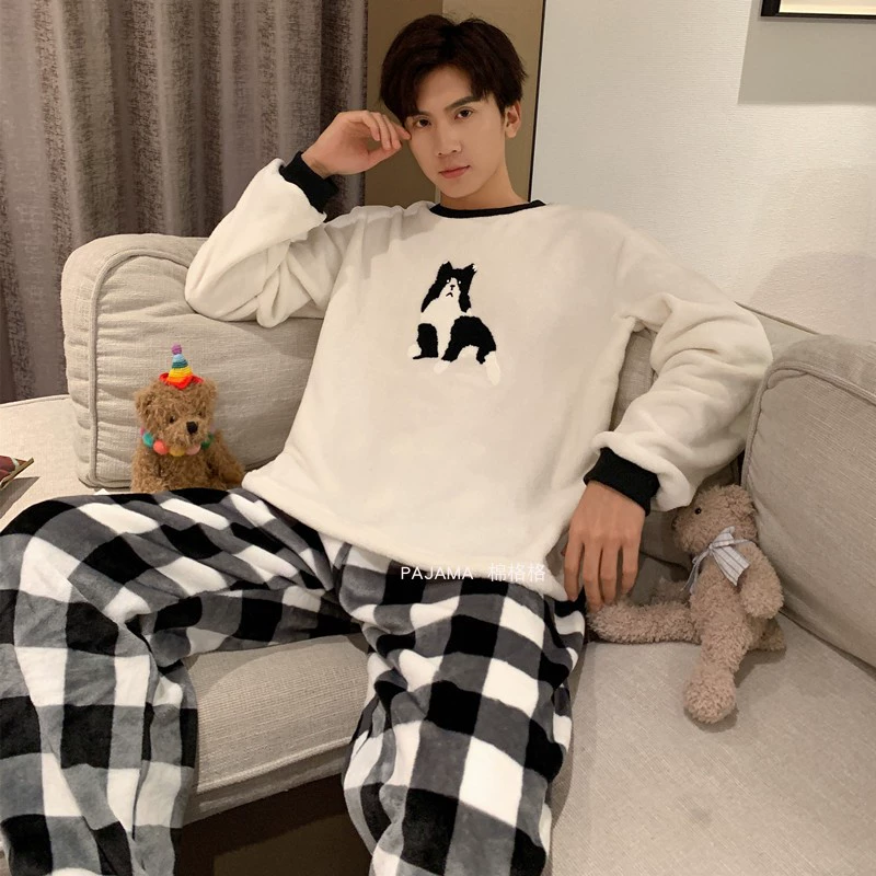 | nameOriginal | Autumn and winter pajamas for men and women thickened coral velvet couple cute cartoon plus velvet flannel can be worn outside home clothes set |