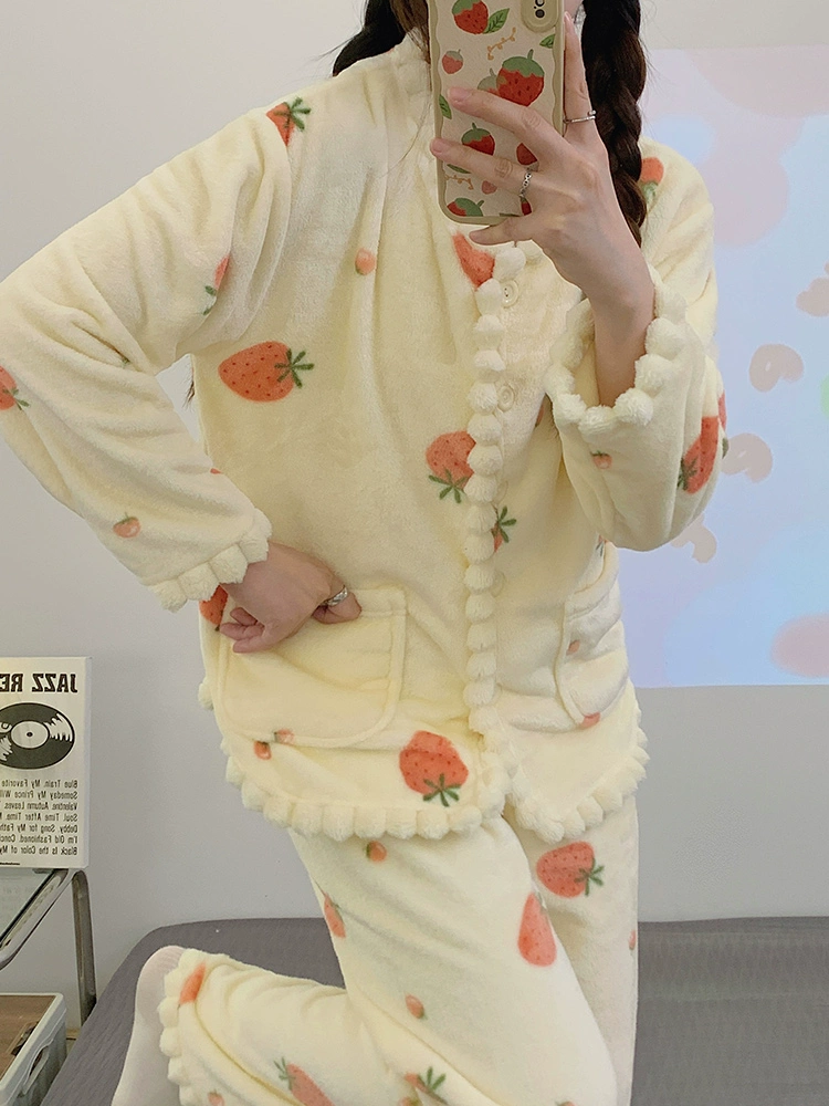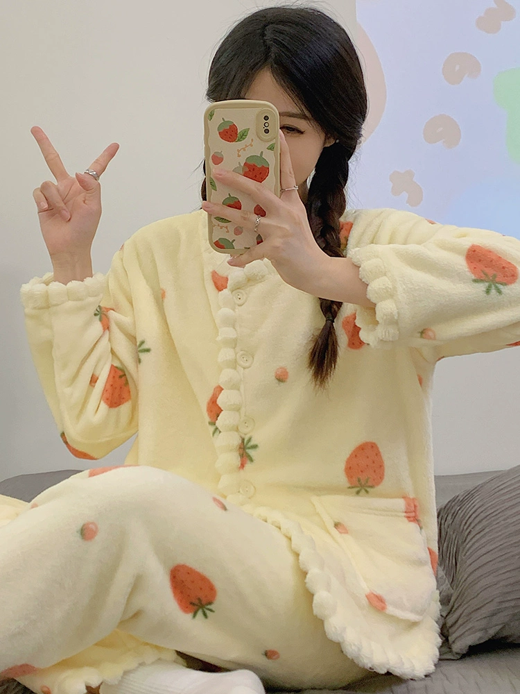 | nameOriginal | Autumn and winter pajamas for women, simple coral velvet plus velvet to keep warm, 2024 new flannel casual home wear set |