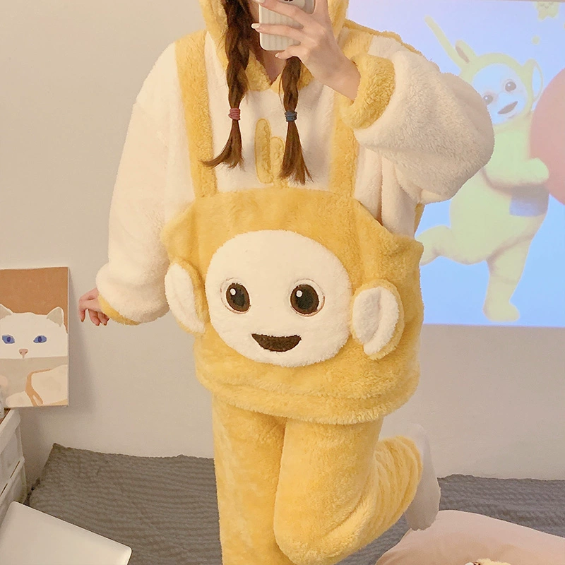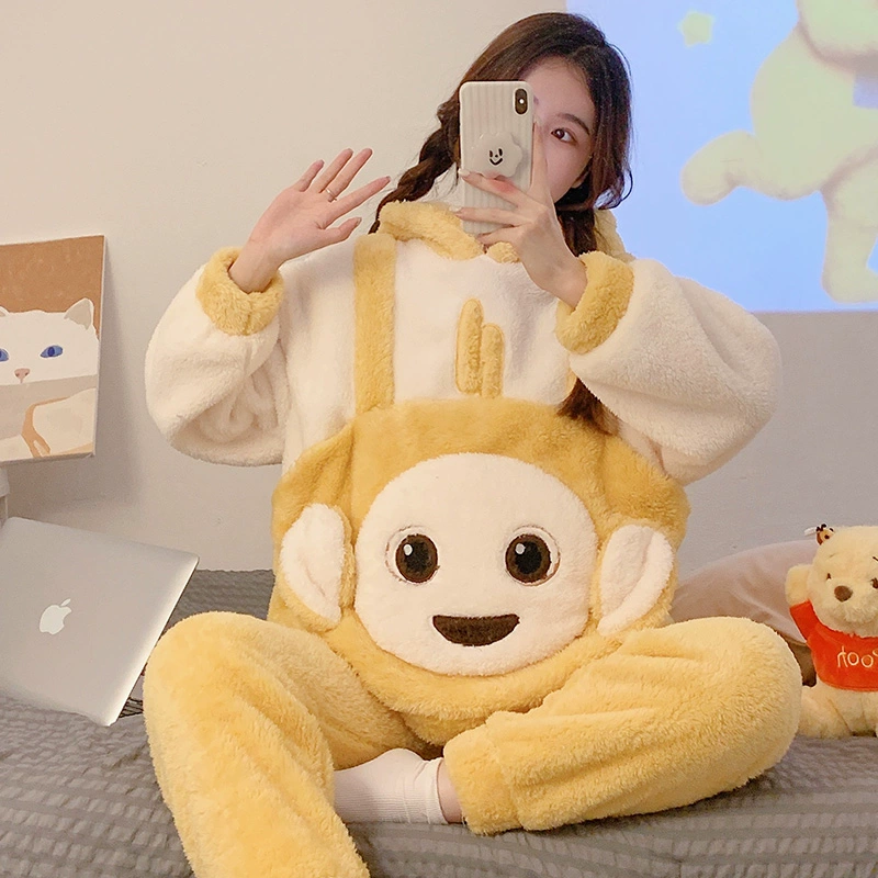 | nameOriginal | Autumn and winter pajamas for women, thickened coral velvet, cute hooded students, warm flannel home clothes set |