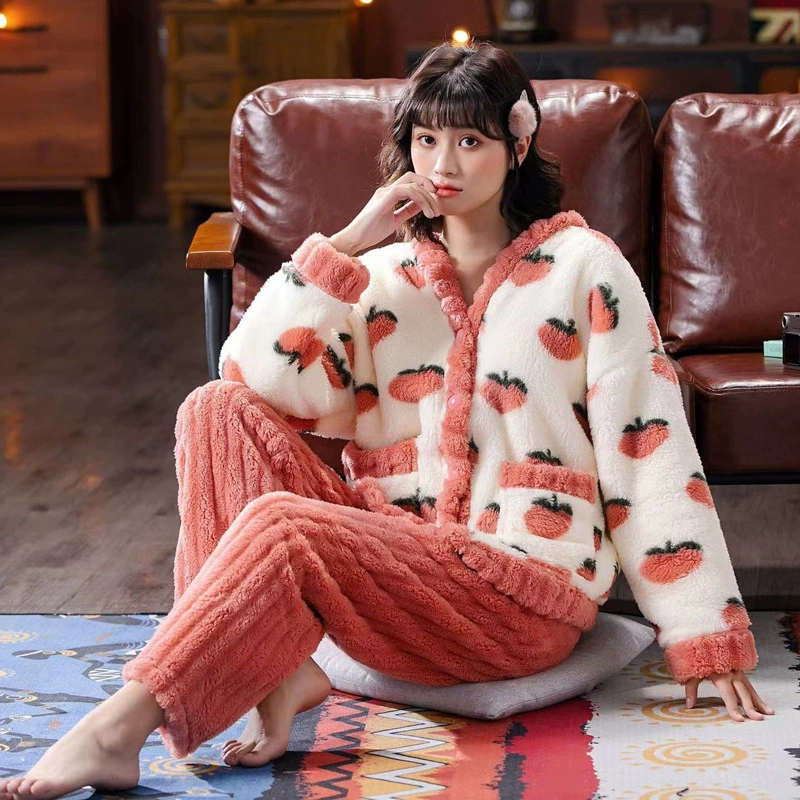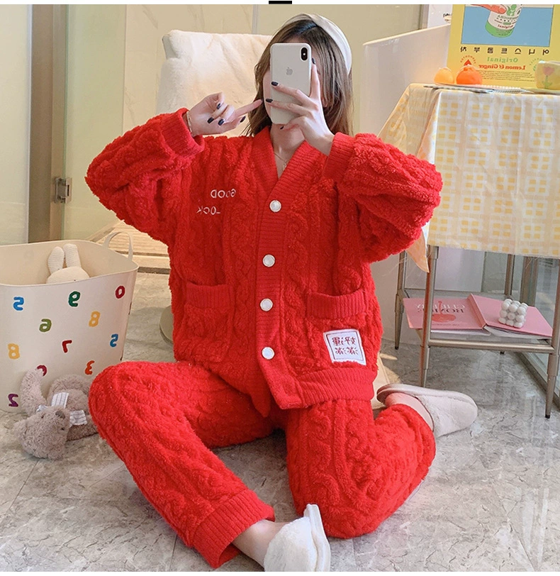| nameOriginal | Autumn and winter pajamas, women's home clothes, cute velvet flannel, spring, autumn and winter women's winter thickened coral velvet suit |