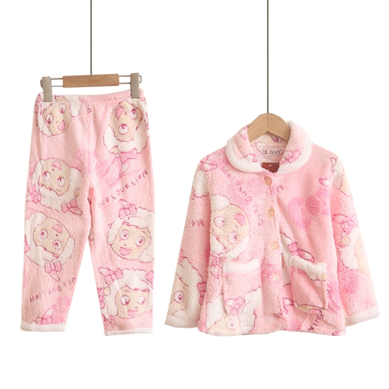 | nameOriginal | Autumn and winter plus velvet children's coral velvet pajamas for girls pink baby home clothes thickened girls' flannel suit |