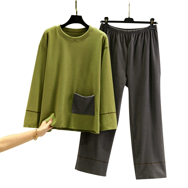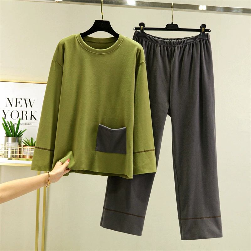 | nameOriginal | Autumn and winter plus velvet long-sleeved pajamas for women, color-blocked home wear two-piece set, German velvet thickened warm casual casual wearable suit |