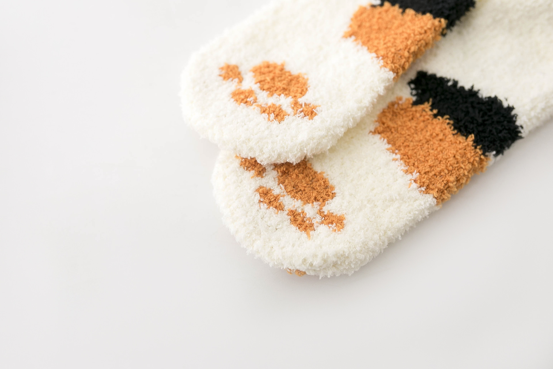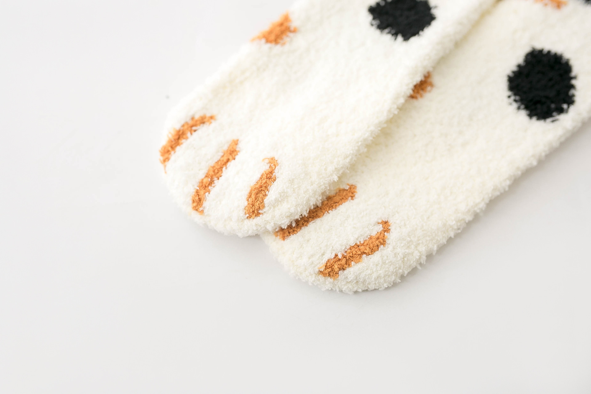 Autumn and winter plus velvet padded warm women’s socks cartoon cute cat’s claw coral fleece sleep socks home floor socks