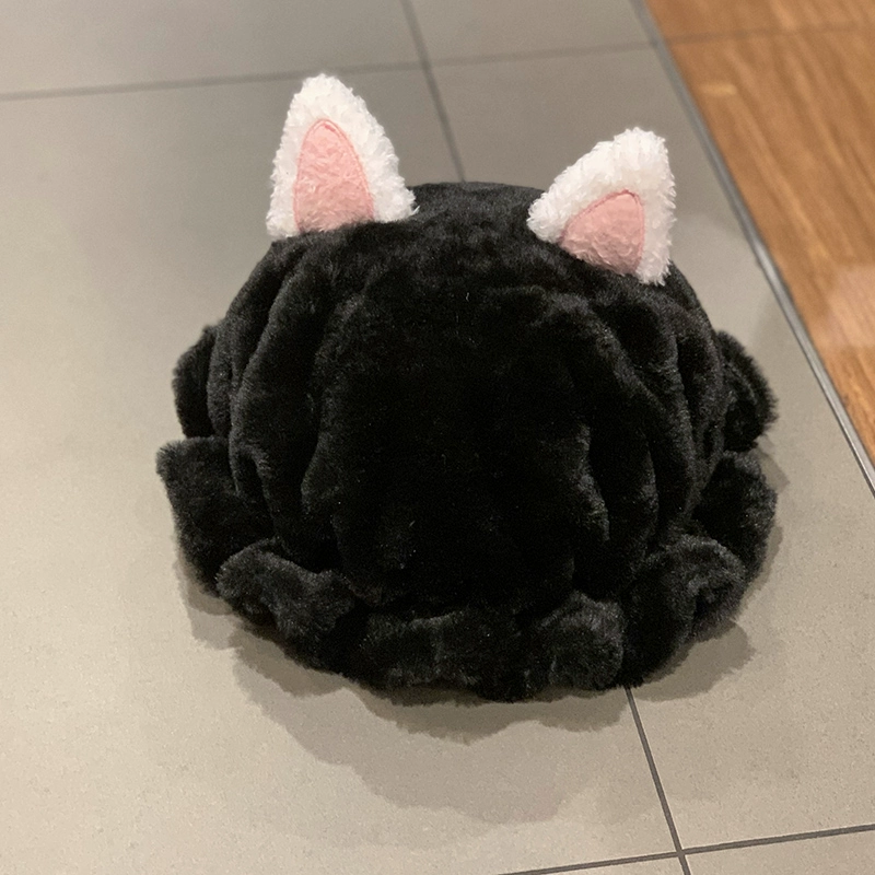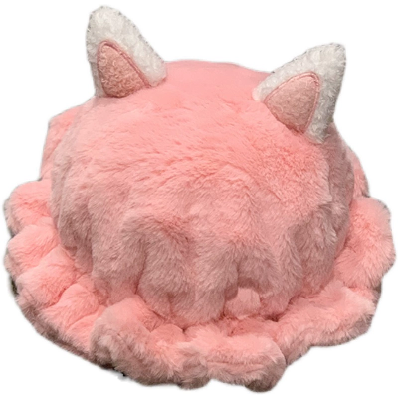Autumn and winter plush cute ears plush hat female Japanese sweet girl versatile basin hat thickened warm fisherman hat