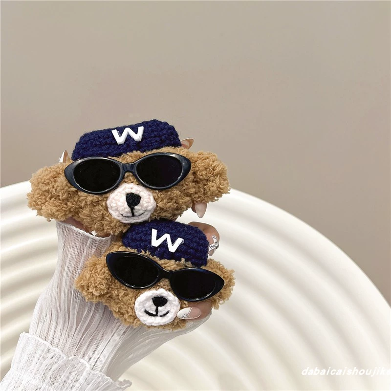 Autumn and winter plush sunglasses bear suitable for airpods3 headphone covers for men and women pro second generation airpodspro2 protective cover new Apple wireless bluetooth third generation airpods2 fun anti-fall tide