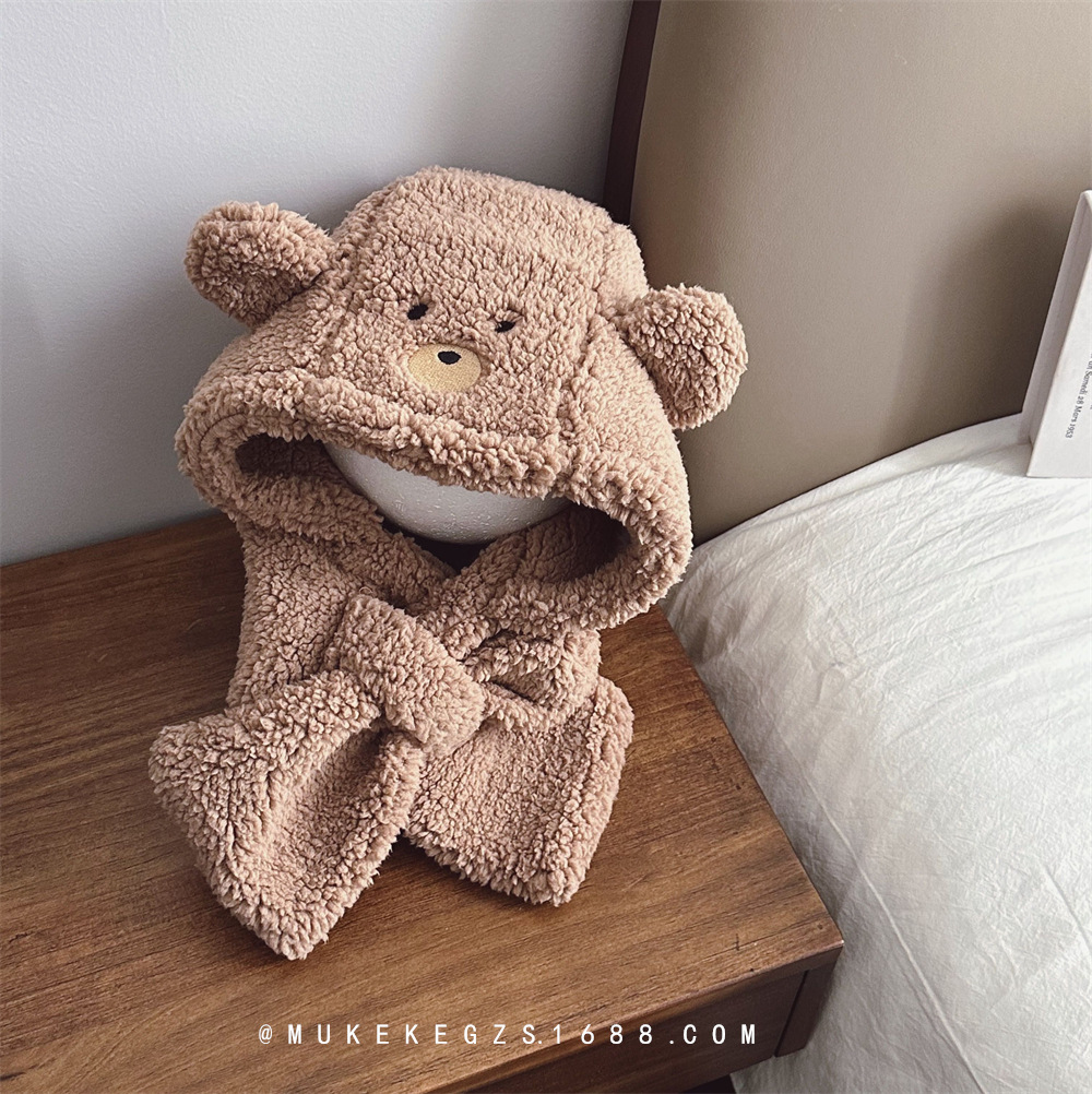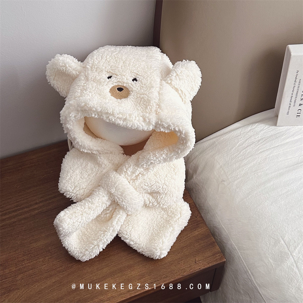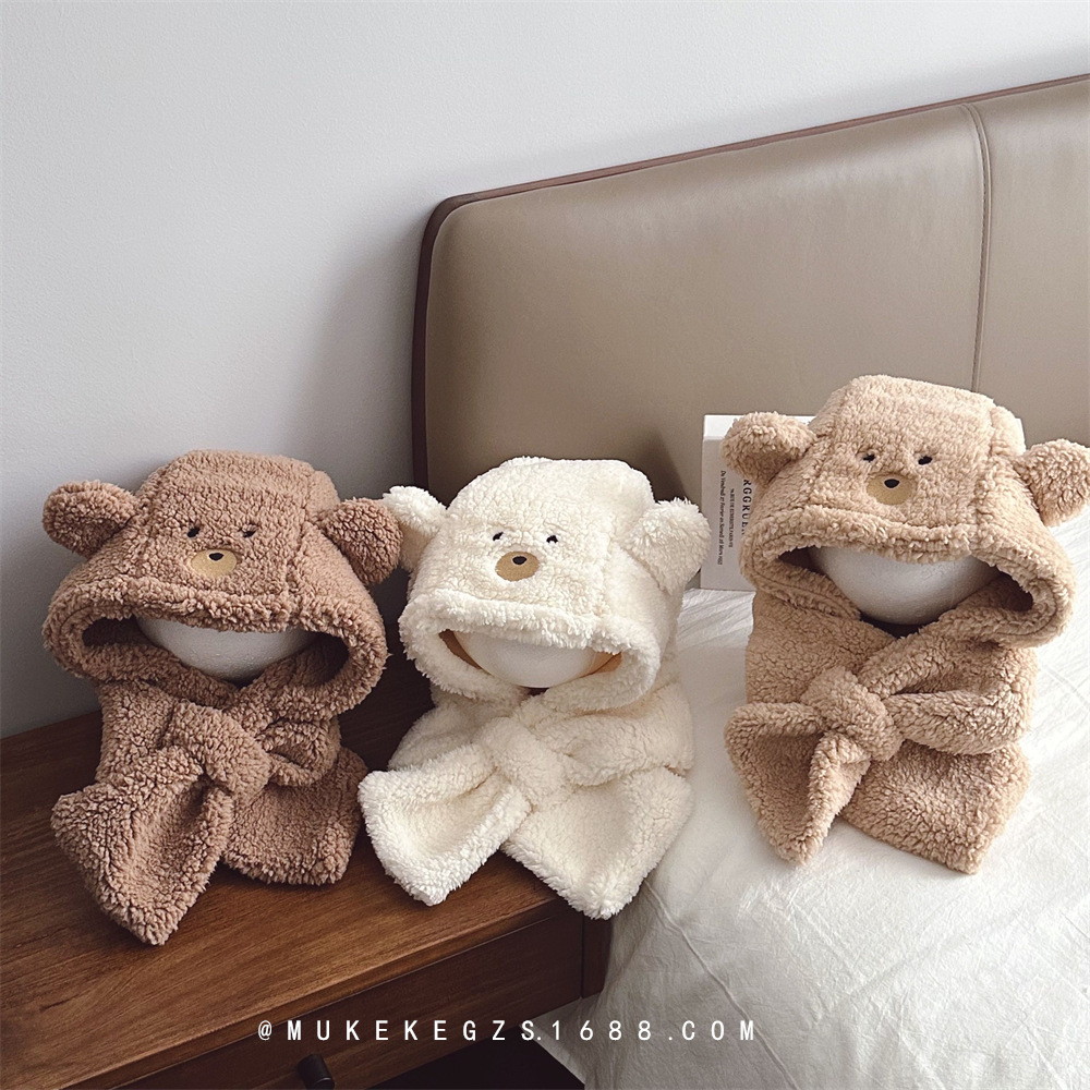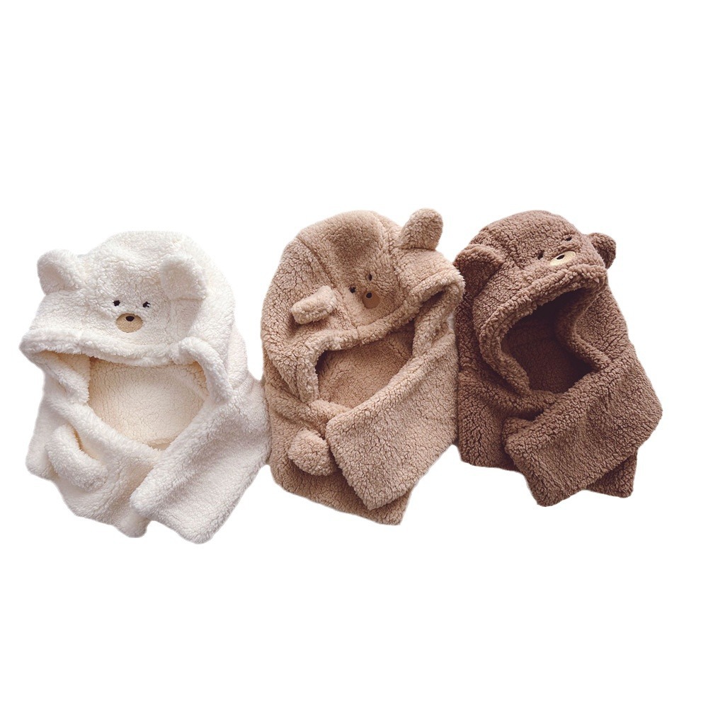 Autumn and winter polar fleece children’s hat scarf one-piece suit cute bear fleece-lined warm earmuffs scarf