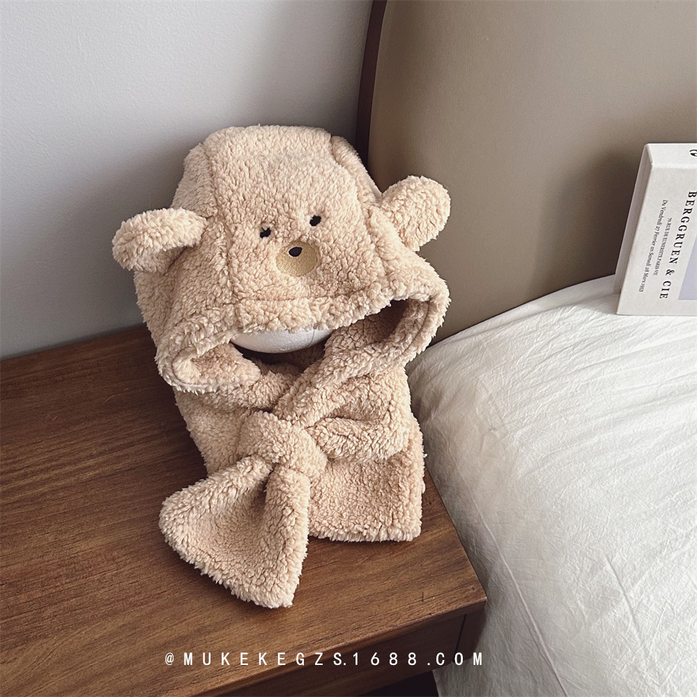 Autumn and winter polar fleece children's hat scarf one-piece suit cute bear fleece-lined warm earmuffs scarf