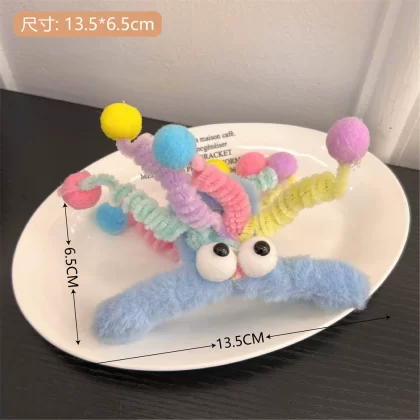 | nameOriginal | Autumn and winter rainbow plush twist stick big eye grabber 2024 new back of the head shark clip hairpin hair accessories |