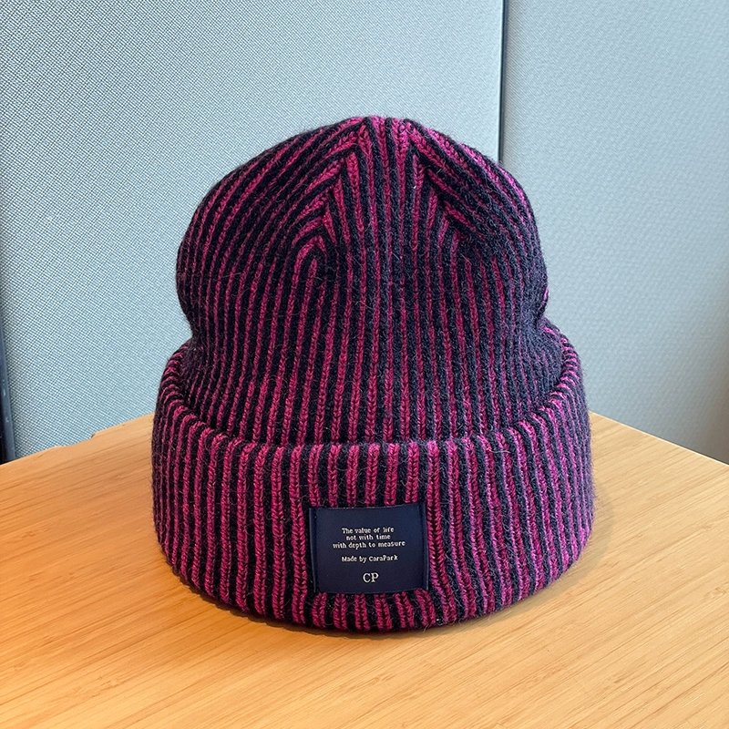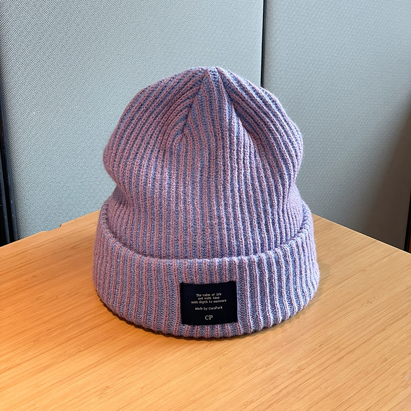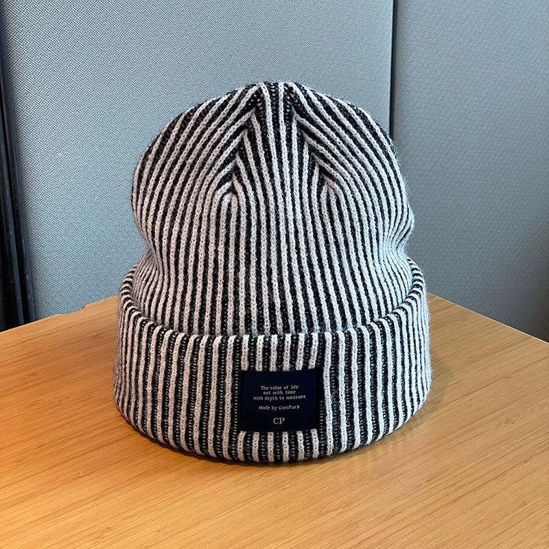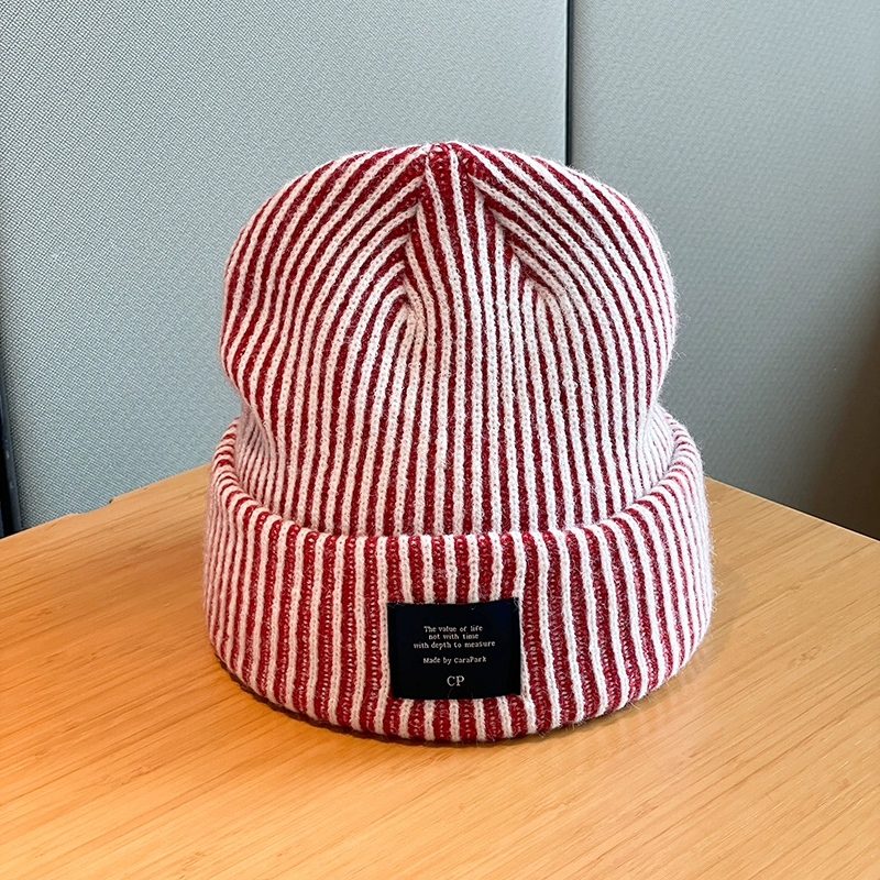 | nameOriginal | Autumn and winter retro striped Korean style cloth label woolen hat for women |