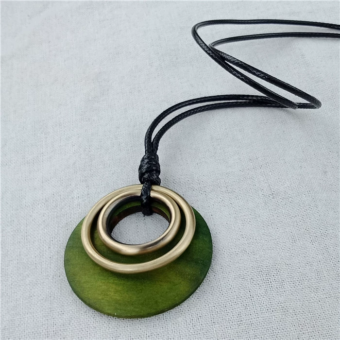 Autumn and winter retro sweater chain log double ring pendant women’s long simple hanging jewelry ethnic style men’s and women’s forest style versatile