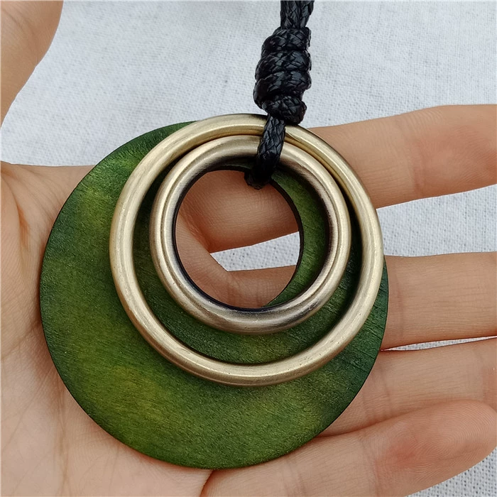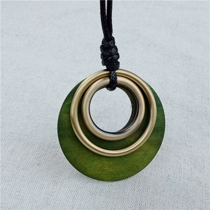 Autumn and winter retro sweater chain log double ring pendant women's long simple hanging jewelry ethnic style men's and women's forest style versatile