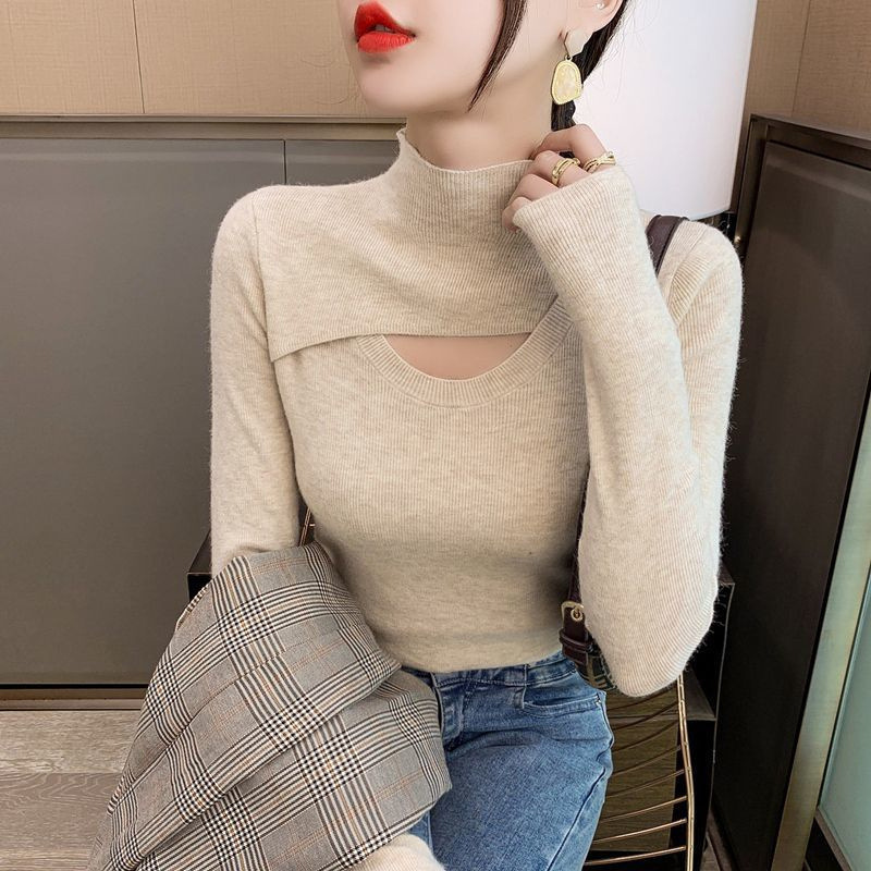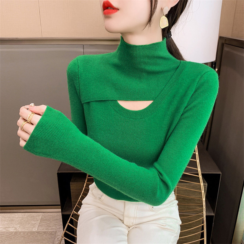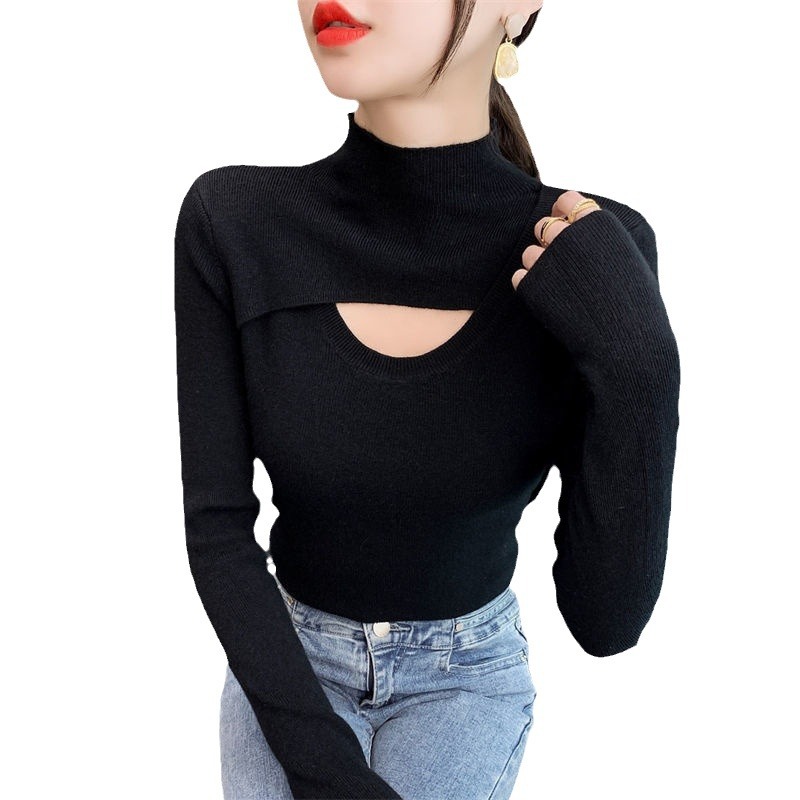 | nameOriginal | Autumn and Winter slim-fit half turtleneck pullover sweater with hollow-out fashion casual warm bottoming shirt for women |