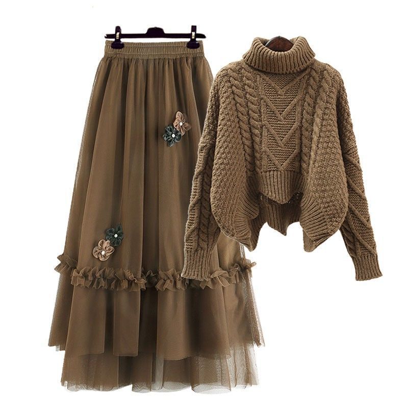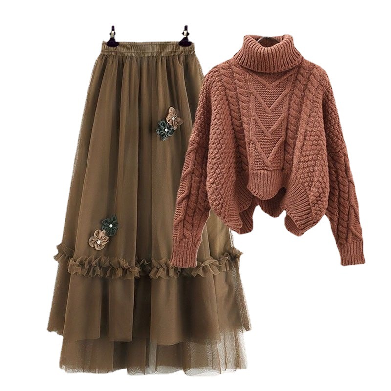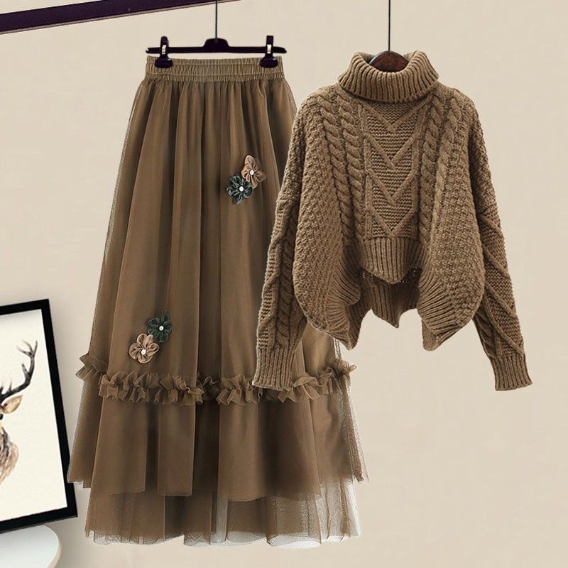 | nameOriginal | Autumn and Winter small knitted sweater with winter skirt mesh skirt Hong Kong style suit women's retro two-piece set |