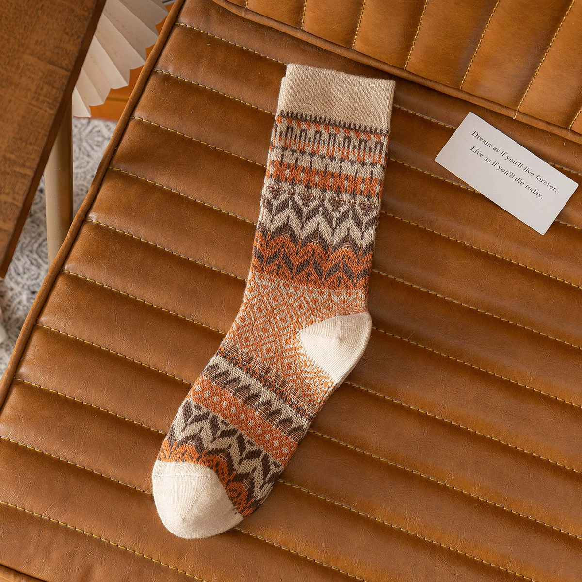 | nameOriginal | Autumn and winter socks, women's socks, retro ethnic style double-needle double-way wavy women's mid-calf socks, no thread ins cotton socks |