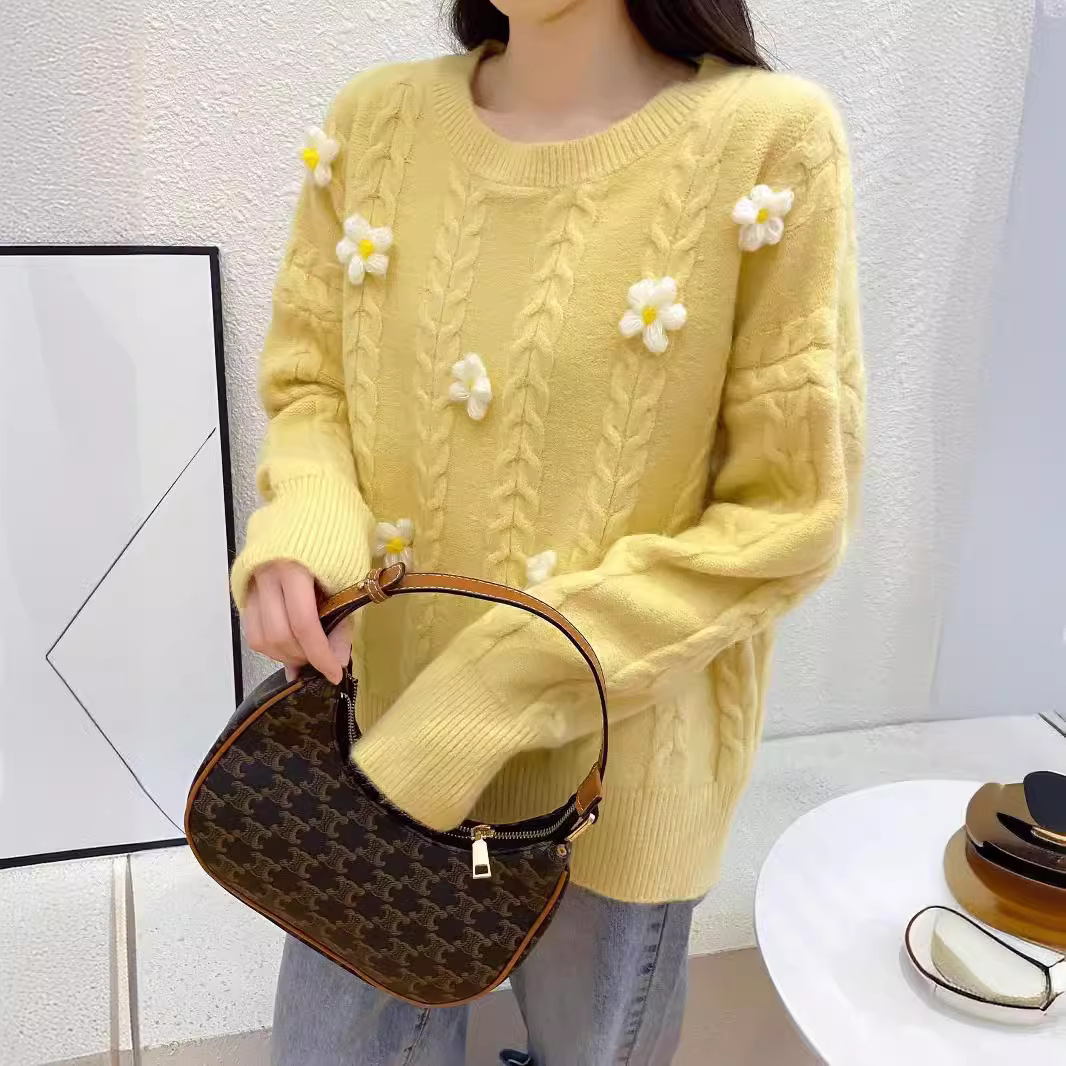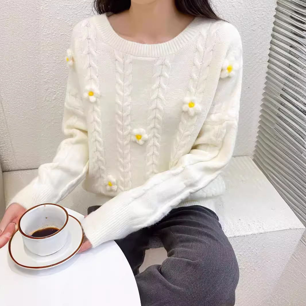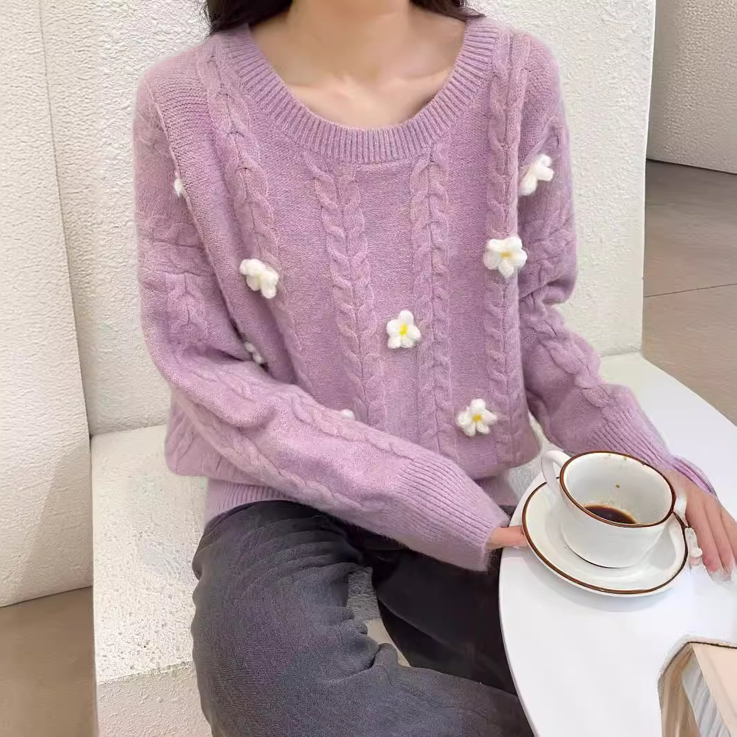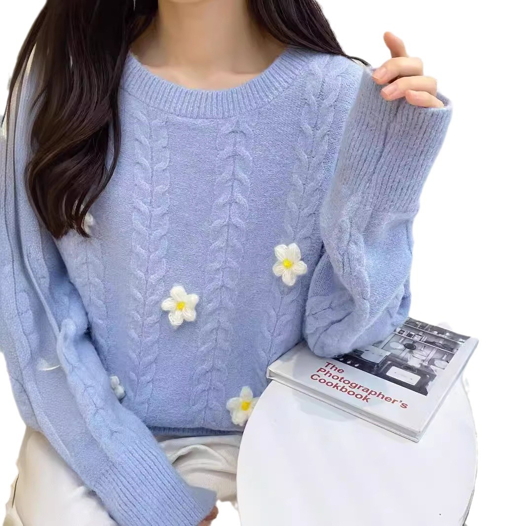 Autumn and Winter Soft Waxy Sweater Women’s 2024 New Pullover Loose Gentle Style Korean Style Soft Milk Blue Base Sweater Top