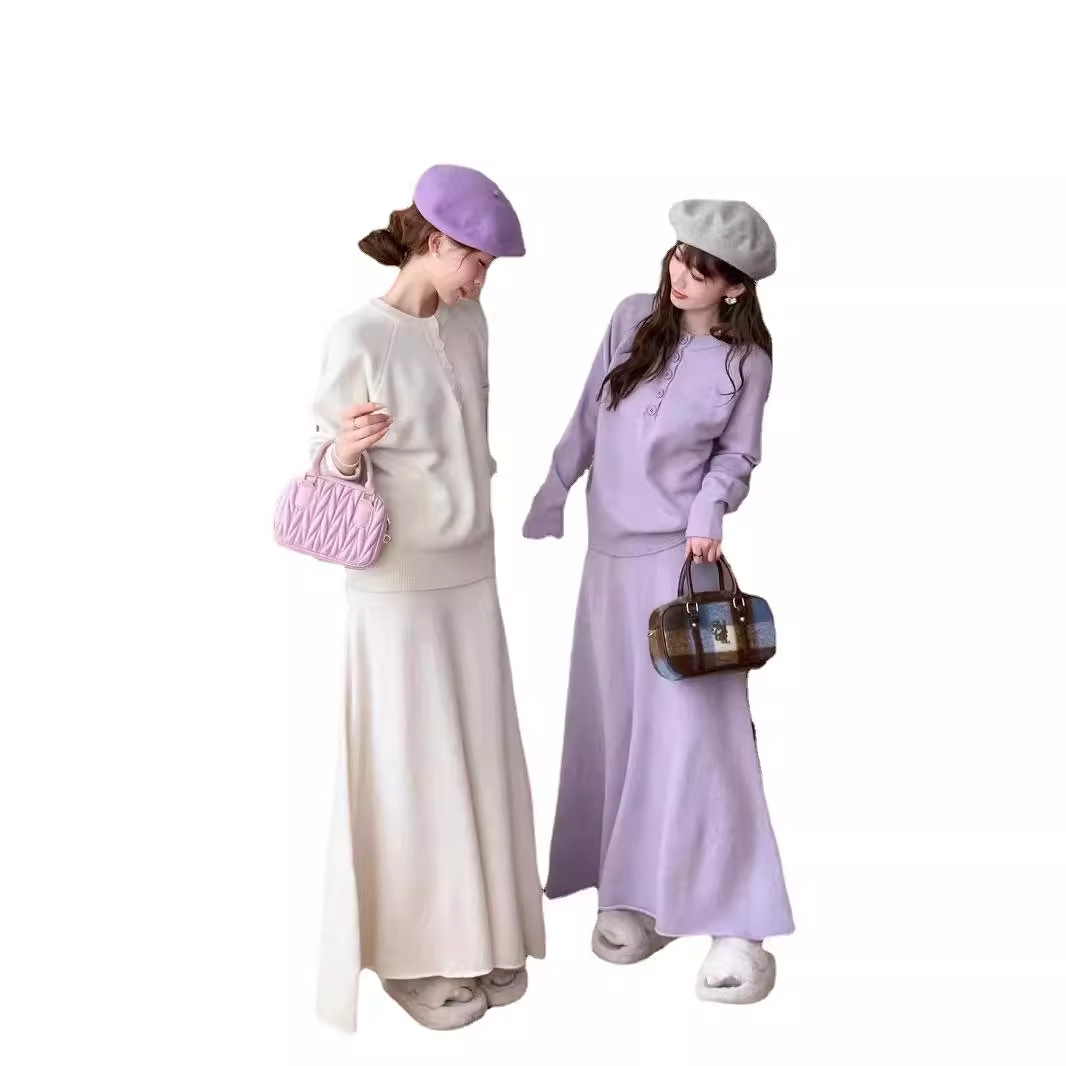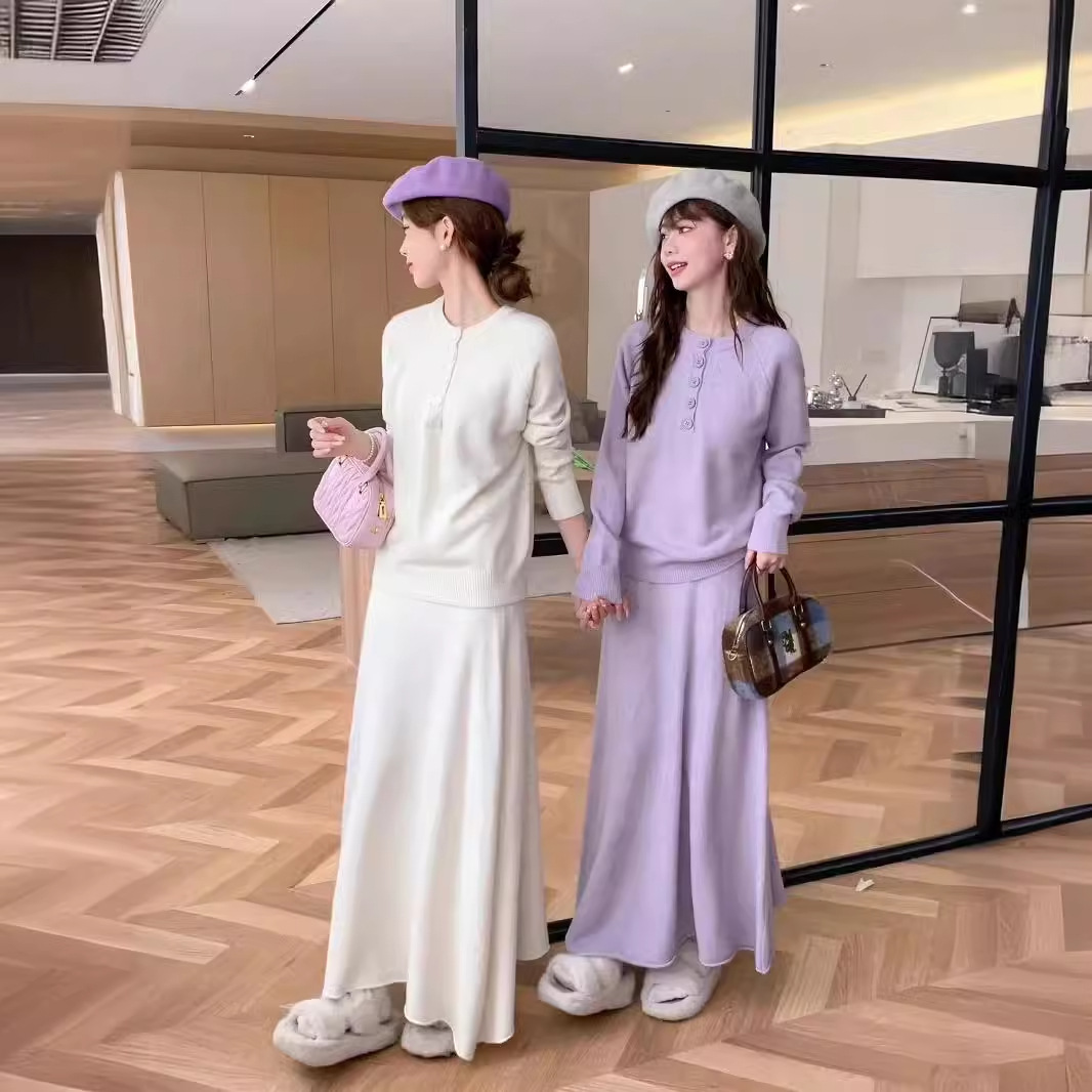 | nameOriginal | Autumn and Winter Solid Color Confucius Pullover Sweater Skirt Two-piece Set Foreign-style Casual Knitted suit plus size Foreign Trade Customization |