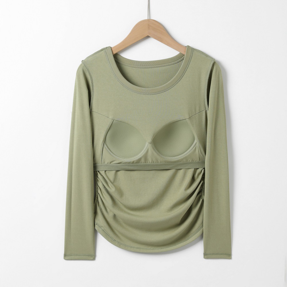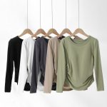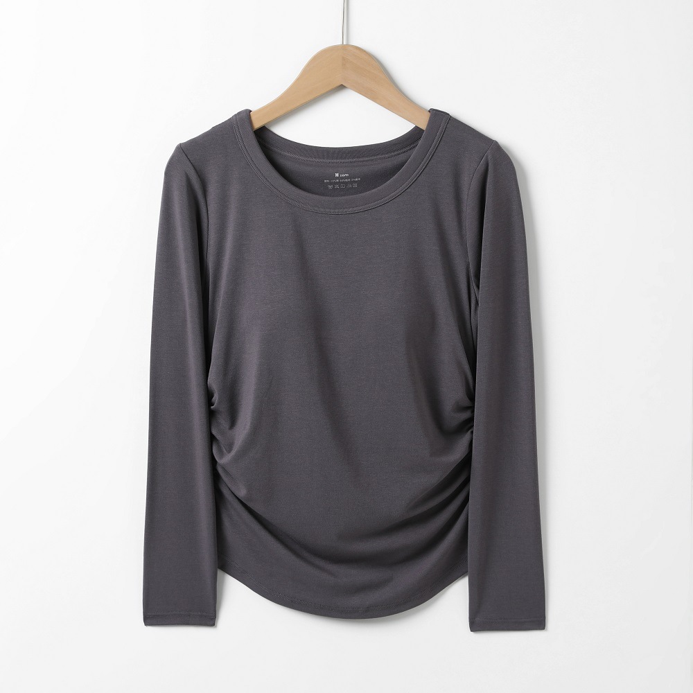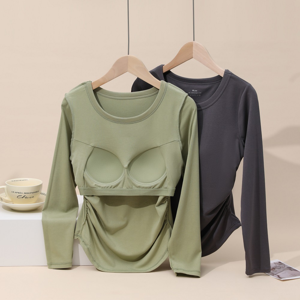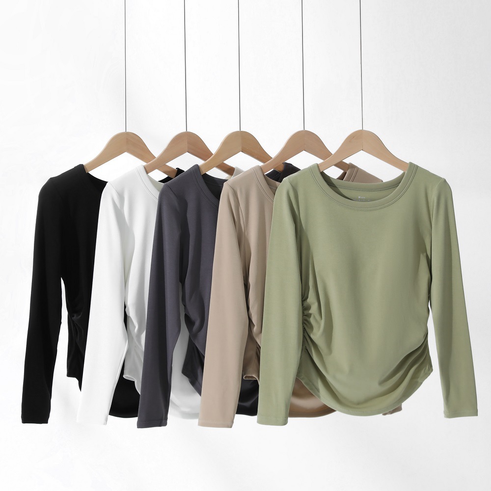 | nameOriginal | Autumn and Winter solid color inner round neck long sleeve with chest pad one-piece dovetail pleated long sleeve slim-fit long sleeve top |