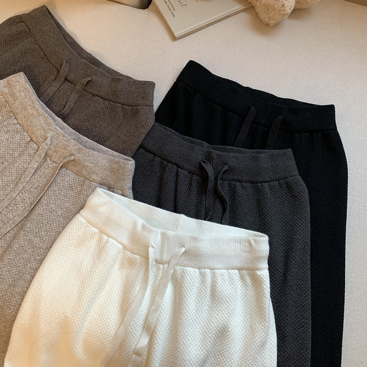 Autumn and Winter Solid Color Lazy Style Texture Knitted Casual Pants Women’s Soft and Waxy Comfortable All-match Drawstring Straight Pants