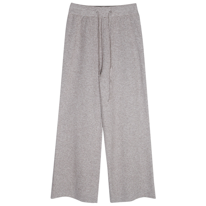 Autumn and Winter Solid Color Lazy Style Texture Knitted Casual Pants Women's Soft and Waxy Comfortable All-match Drawstring Straight Pants