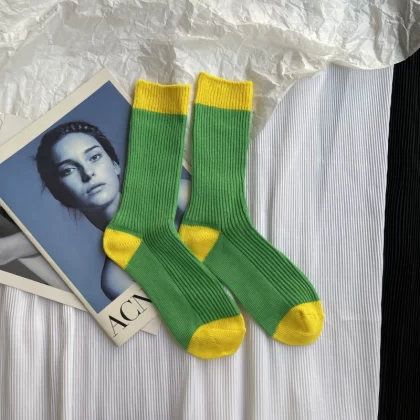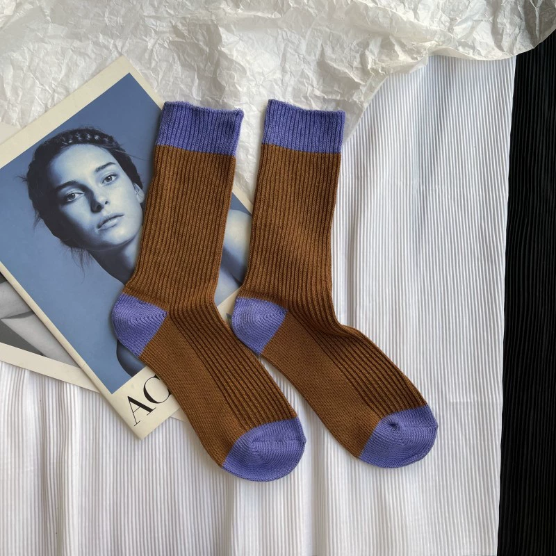 | nameOriginal | Autumn and winter thick needle cotton thread color matching soft mid-tube trendy socks European and American sports retro stockings personalized trendy brand women's socks |