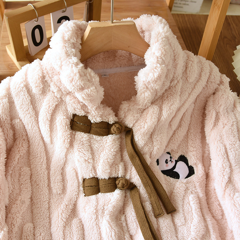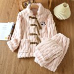 Autumn and Winter Thickened Coral Fleece Pajamas Women’s Winter Flannel Plus Velvet Suit Spring and Autumn Cardigan Large Size Women’s Home Clothes