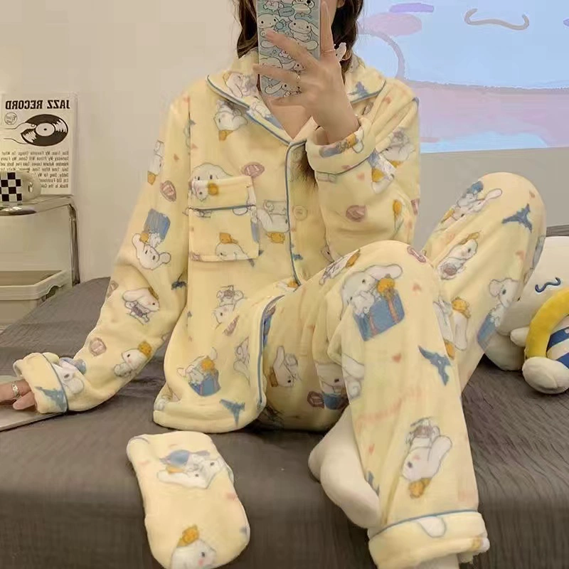 | nameOriginal | Autumn and winter thickened coral velvet pajamas women's suit home clothes plus velvet cute flannel long-sleeved cardigan large size |