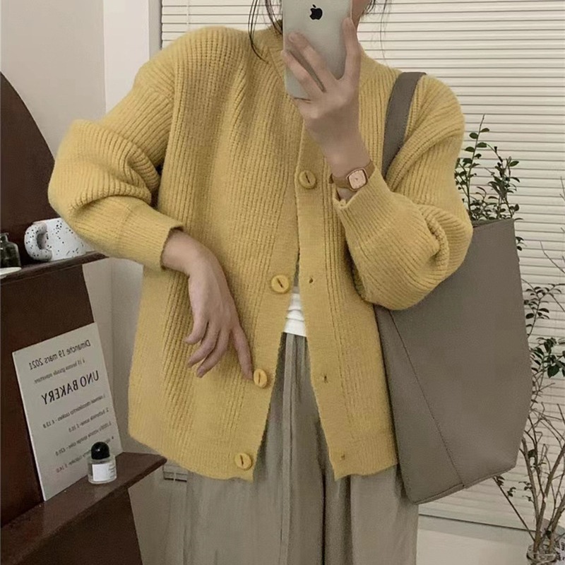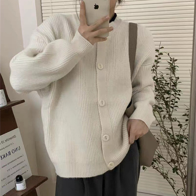 | nameOriginal | Autumn and Winter thickened knitted cardigan sweater women's design Korean style loose soft round neck warm top sweater coat |