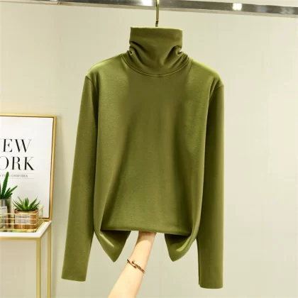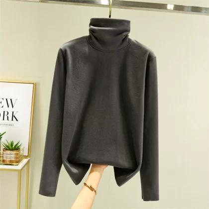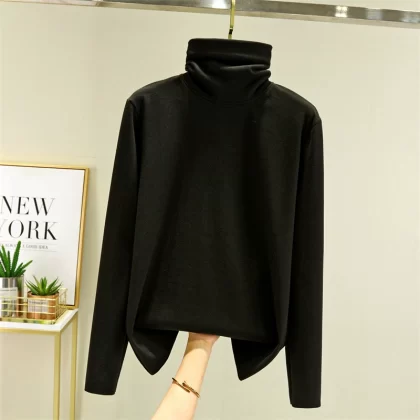 Autumn and winter thick slim -fitting pure color long -sleeved T -shirt
