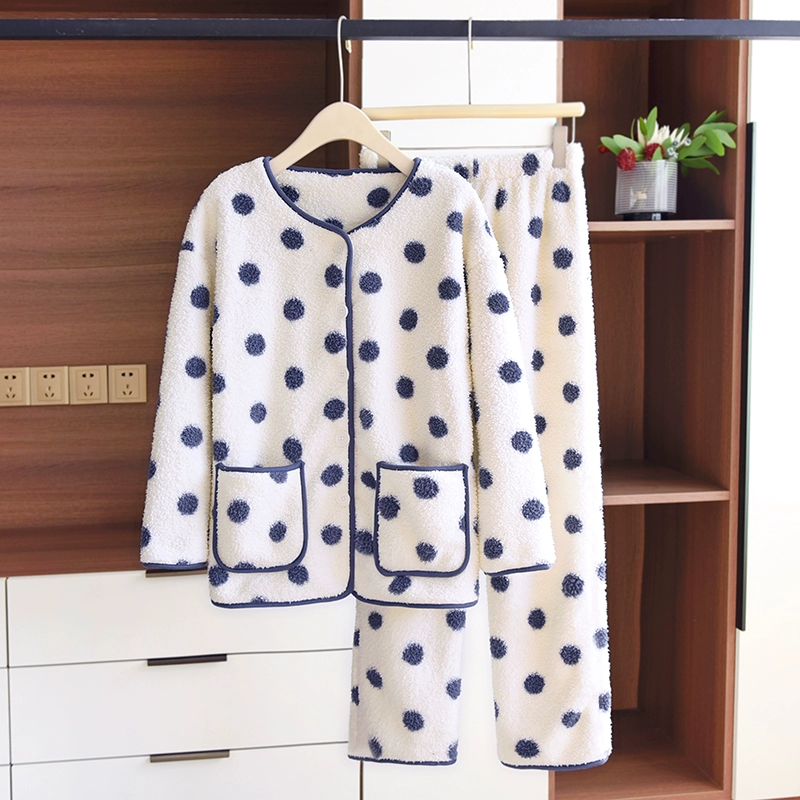 | nameOriginal | Autumn and winter thickened women's pajamas rice velvet warm home clothes plus velvet thickened coral velvet cardigan loose flannel |