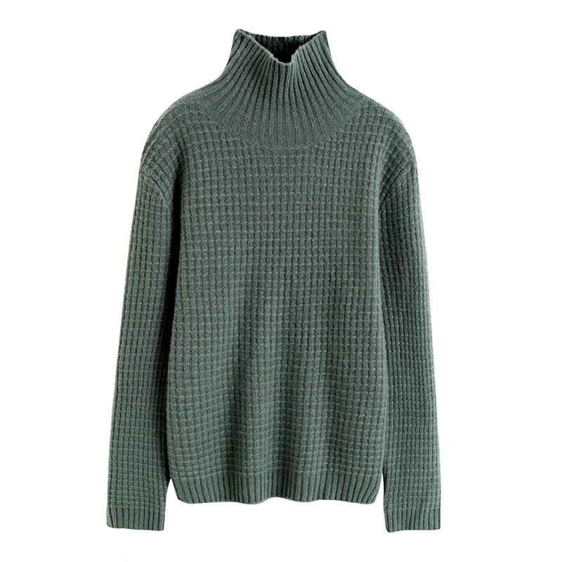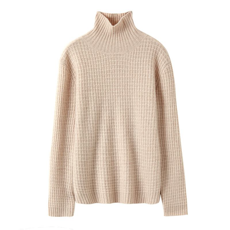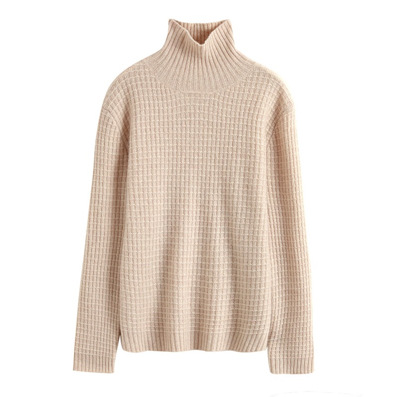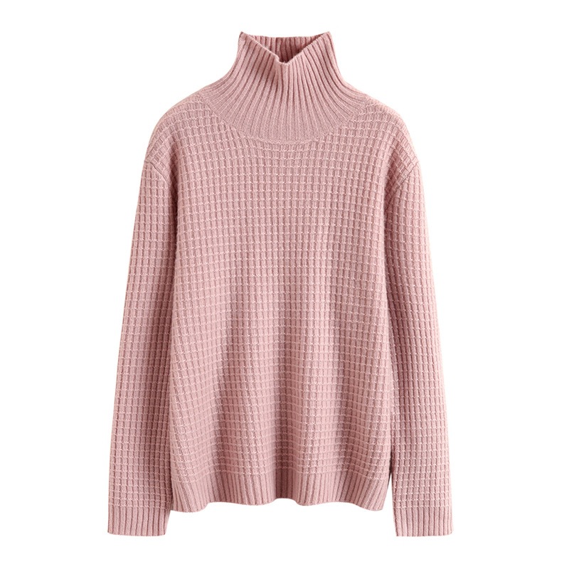 Autumn and Winter turtleneck 100 cashmere sweater solid color striped sweater women’s loose pullover cashmere knitted slimming bottoming pullover