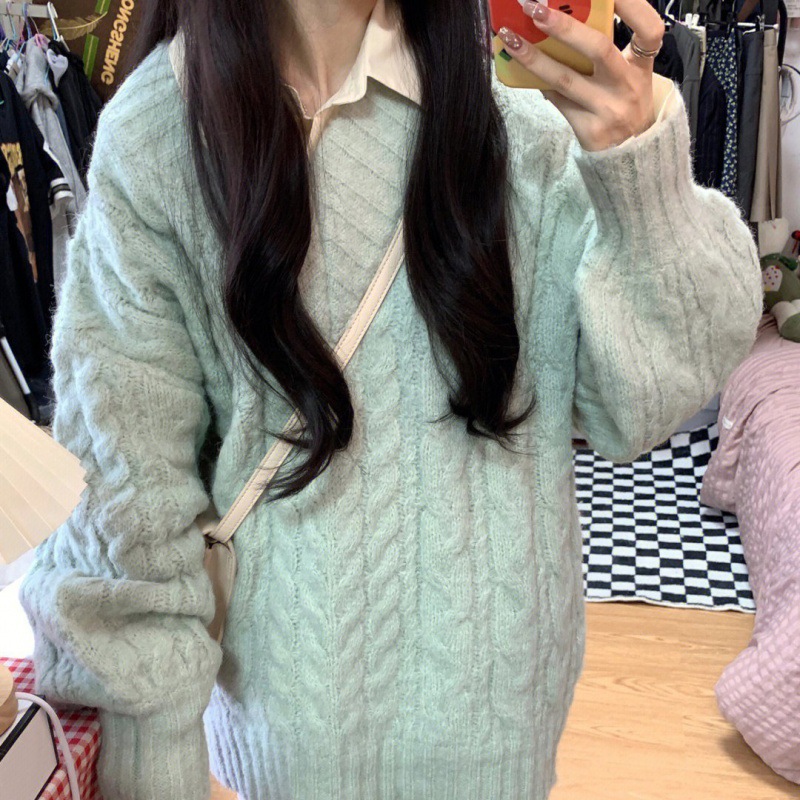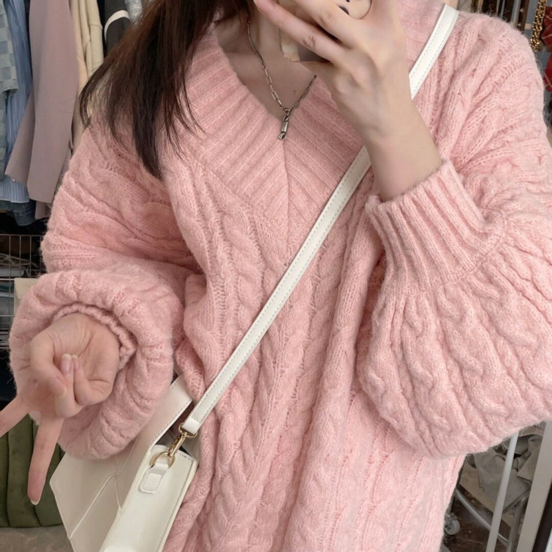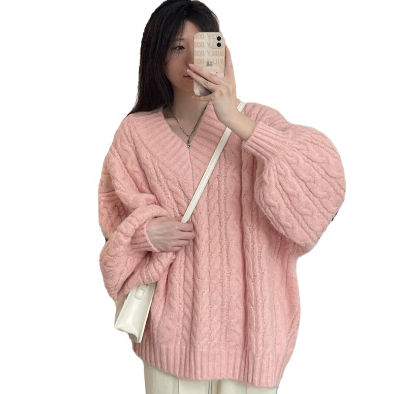 Autumn and Winter Twist Pullover V-Neck Sweater Women’s 2024 New Pure Desire Fashion Slim Loose Knitted Shirt Top