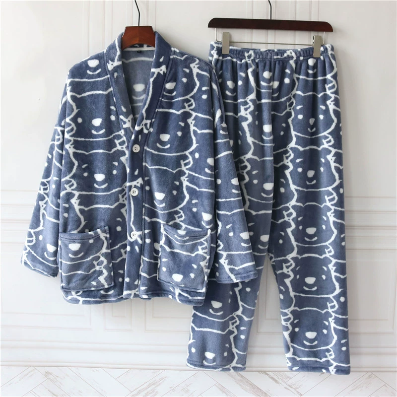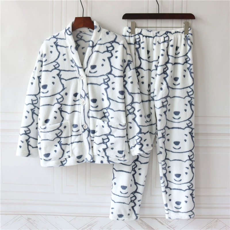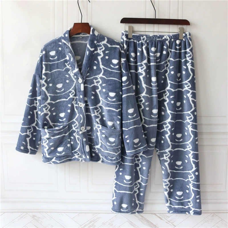 | nameOriginal | Autumn and winter V-neck cartoon flannel pajamas for girls and men plus velvet and thickened coral velvet couple home wear set |